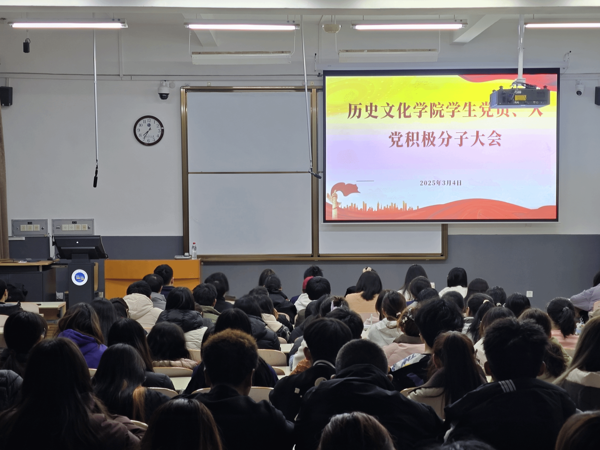 在致真楼206教室举行全体学生党员及入党积极分子会议。副书记王振忠主持会议并做了动员讲话,辅导员李梦阳参加了会议。