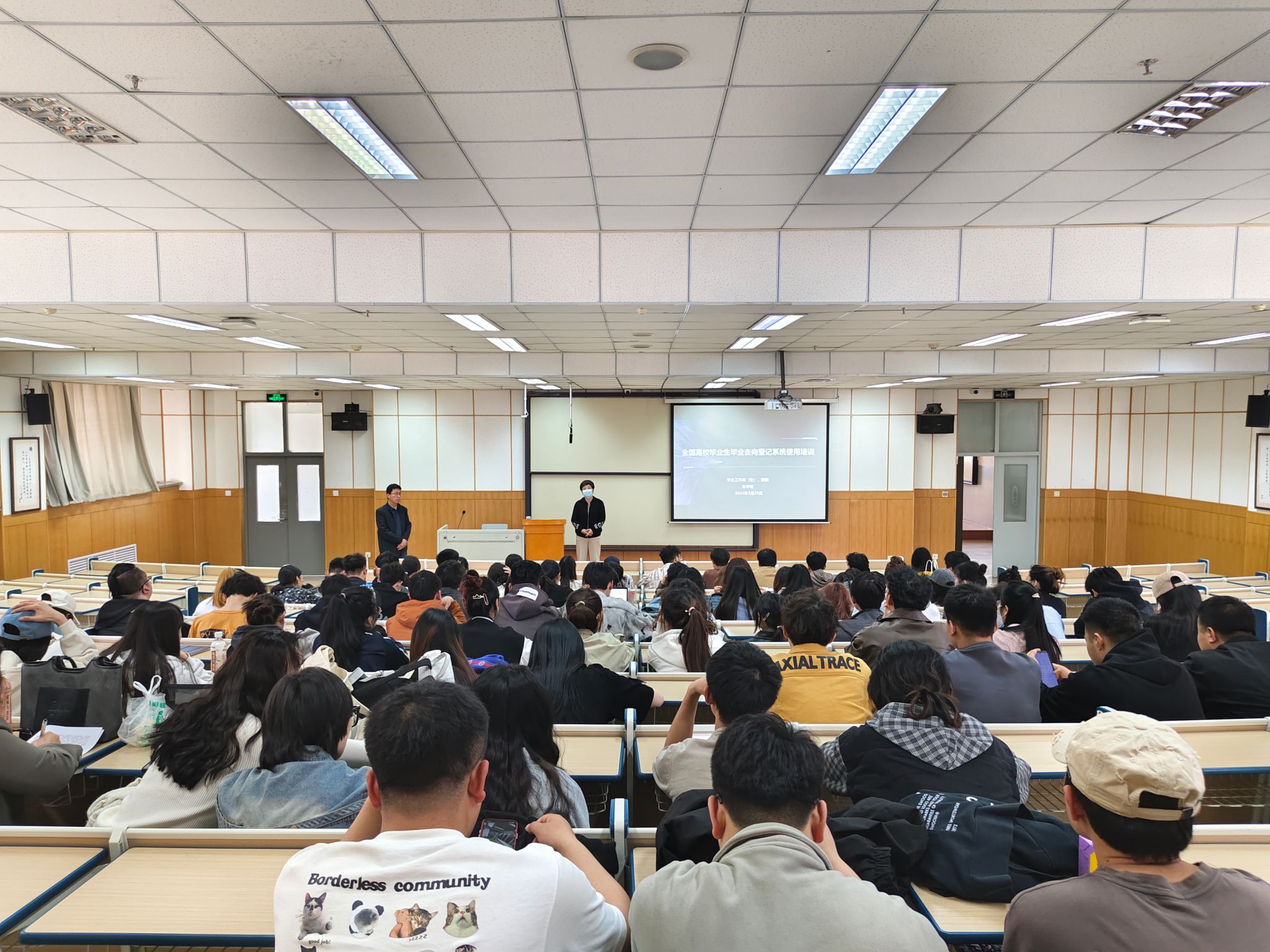 会上,铁书记强调了此次讲座对于毕业生就业的重要性,希望毕业生珍惜机会,把握当下。随后,朱老师为同学们详细介绍了全国高校毕业生毕业去向登记系统,主要从系统介绍、去向登记、去向确认和查询核验几个方面展开讲解,一步一步进行操作演示。朱老师特别强调了个人档案的重要性,务必认真进行信息核对,同时还鼓励同学们认真经营好自身的职业生涯,选择最适合自己的方式走向成功。