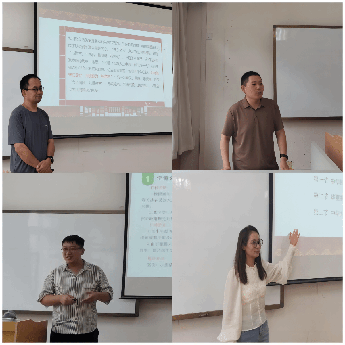 《关于教学单位做好本科教育教学审核评估诊断性评估整改暨暑期评建工作的通知》,切实提高任课教师的课堂教学能力,推进《中华民族共同体概论》课程思政建设。8月25日,中华民族共同体概论教研室开展“教育教学大练兵”活动,在致善楼118教室组织开展集体备课活动和说课、讲课、听评课活动。