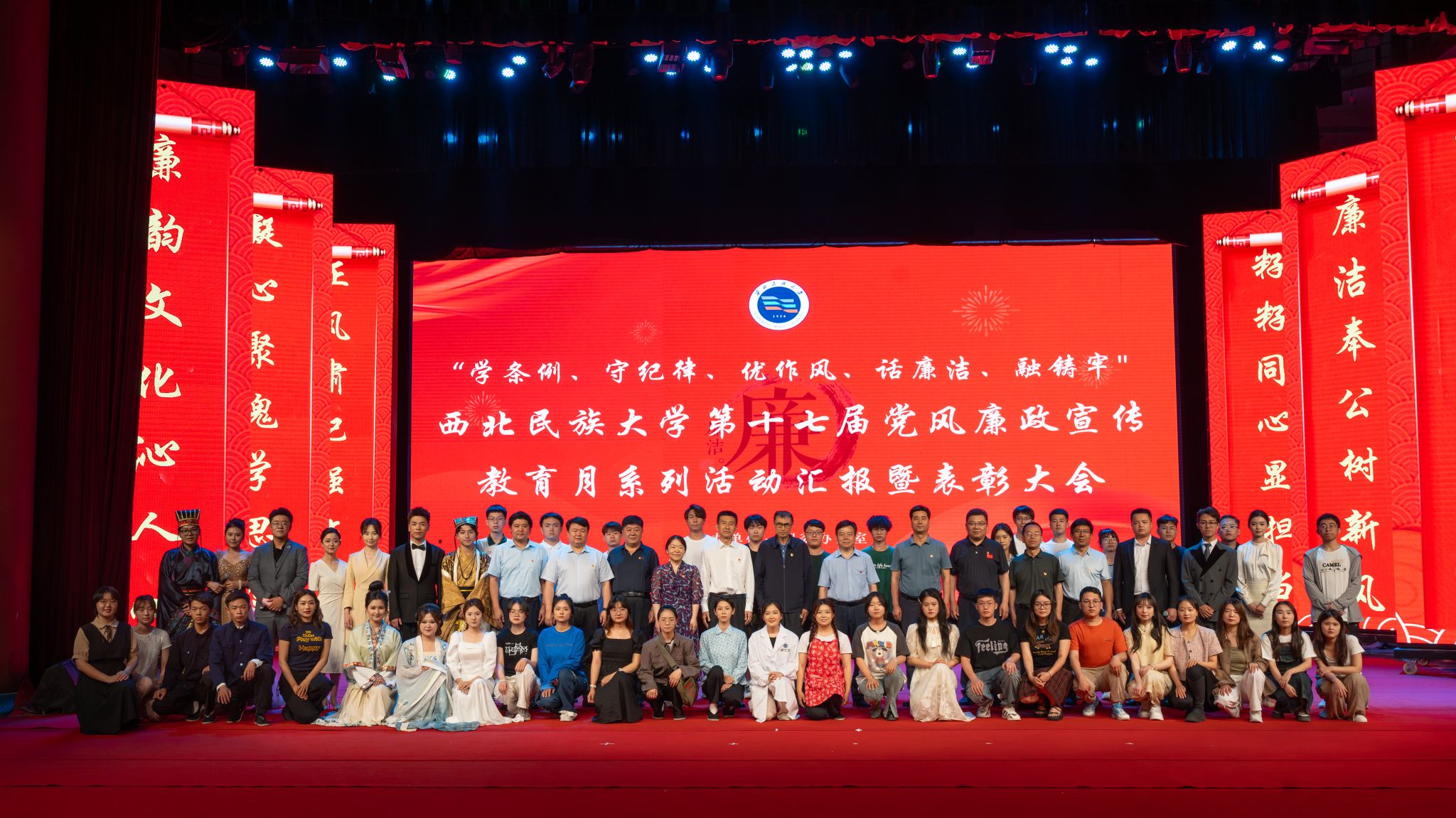 召开“学条例、守纪律、优作风、话廉洁、融铸牢”第十七届党风廉政宣传教育活动汇报暨廉洁教育系列活动表彰大会。党委书记张俊豪出席并讲话,党委常委、纪委书记杨晓主持。在家校领导,各单位各部门党员干部、教师、学生、退休职工代表等共计700人参加表彰大会。