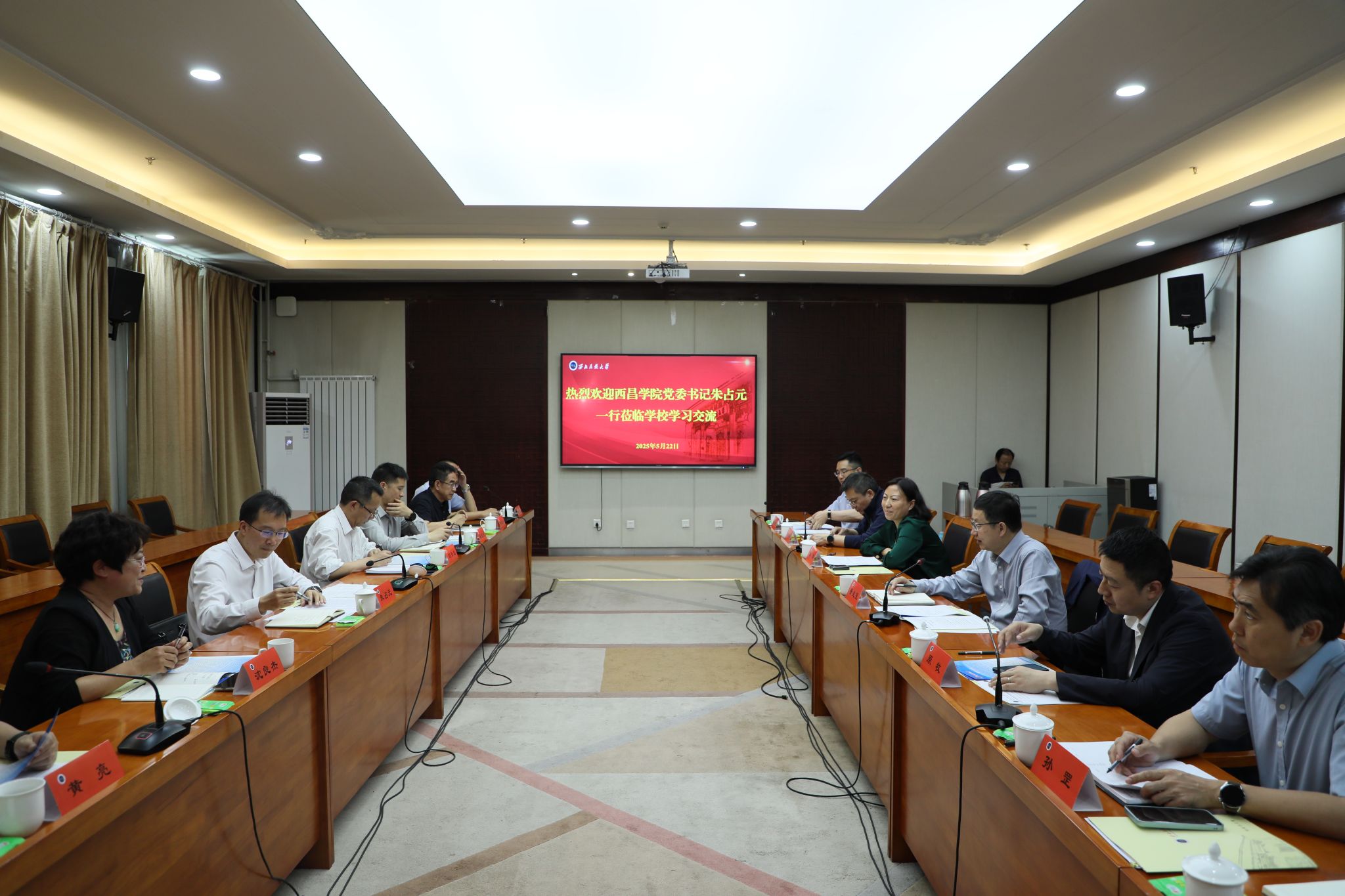 办公室、党委宣传部、党委统战部、教务处等部门负责人参加交流活动。