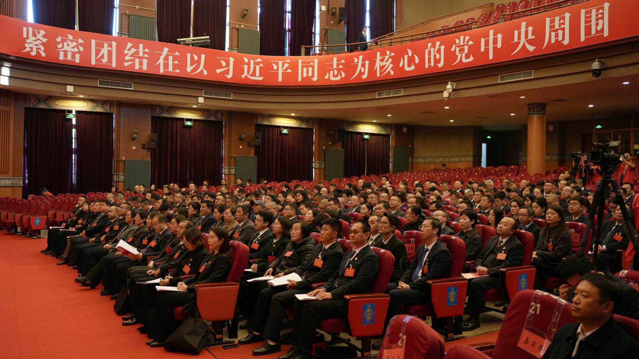 会场内气氛庄严热烈,主席台上方悬挂着“中国共产党红黑游戏