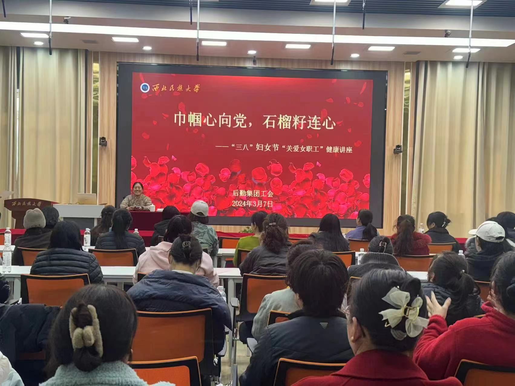 后勤集团工会在西北新村校区举办关爱女职工健康知识讲座。授课教师用通俗易懂的语言,结合女性生理特点,详细讲解了常见疾病的预防治疗以及心理健康等知识,并对现场提出的问题作了专业解答。大家纷纷表示,通过这次讲座,使她们增强了健康意识,学到了健康知识,对保持身体健康有了更加明确的方向。