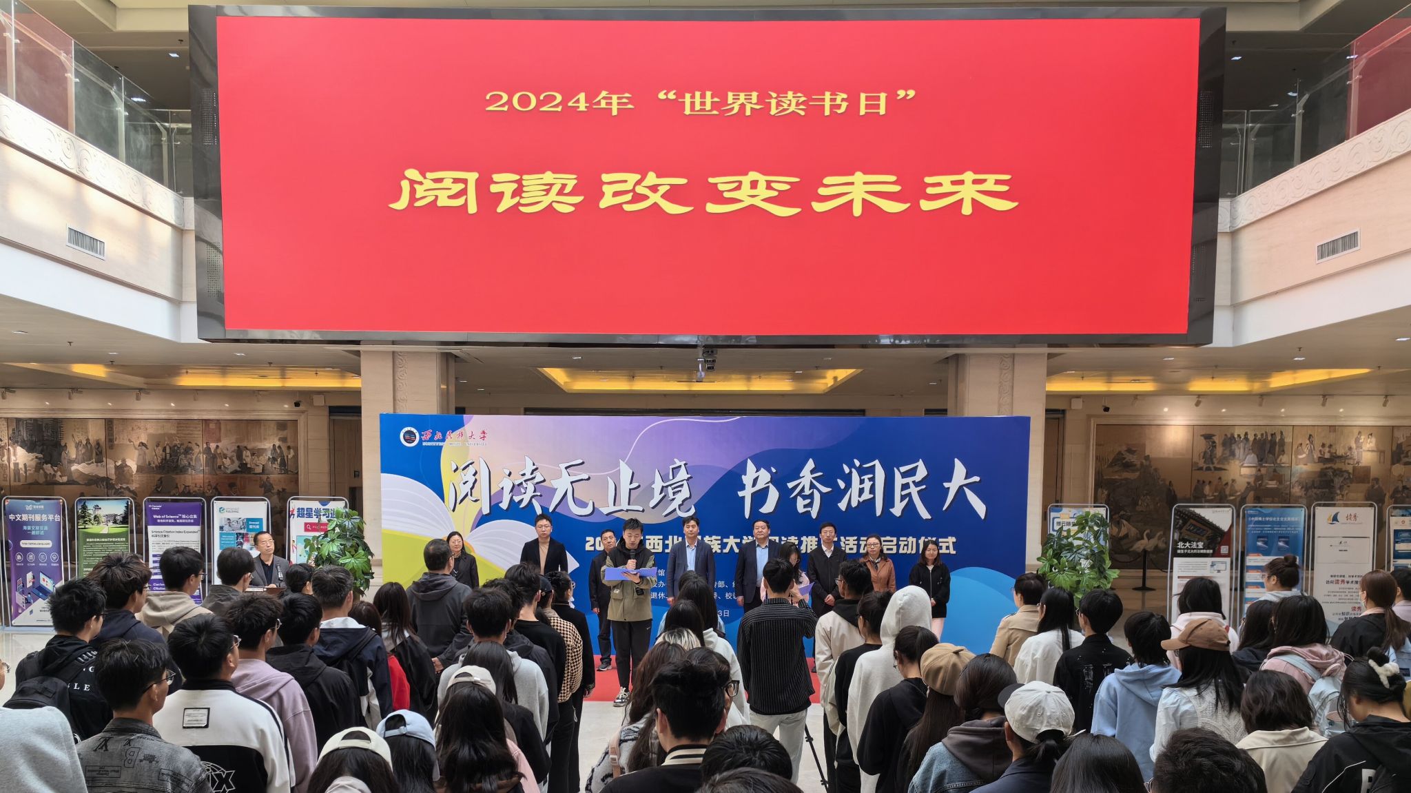 此次活动旨在深入学习贯彻习近平文化思想,强化图书馆文化育人功能,倡导全体学生积极参与阅读活动,形成爱好书、读好书、善读书的浓厚书香校园氛围。启动仪式上介绍了2024年阅读推广系列活动具体内容,向获得2023年度校园“借阅达人” “学习之星”的学生代表颁发荣誉证书,发起“走进图书馆,借阅经典书籍,积极参与阅读活动”的倡议。