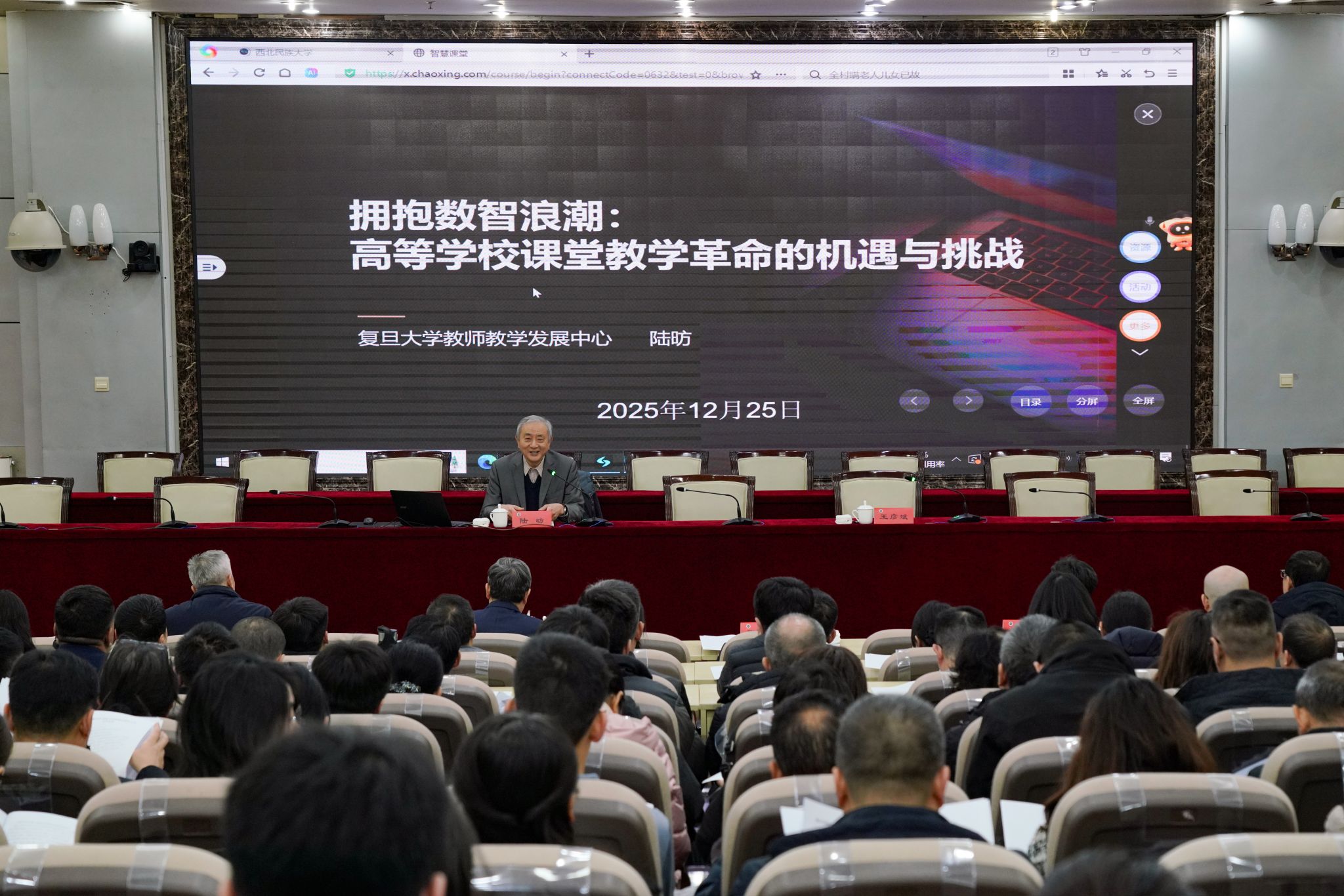 12月25日,红黑游戏 召开以“深学笃行第七次党代会精神 奋力谱写本科教育教学新篇章”为主题的2025年度本科教育教学工作会议。会议邀请复旦大学原副校长陆昉教授作专题报告。党委书记张俊豪,党委副书记、校长王彦斌出席会议并讲话。在校校领导,本科教学督导委员,职能部门、科研单位、直属单位负责人,教学单位班子成员及专业负责人、基层教学组织负责人,学生代表等300余人参会。