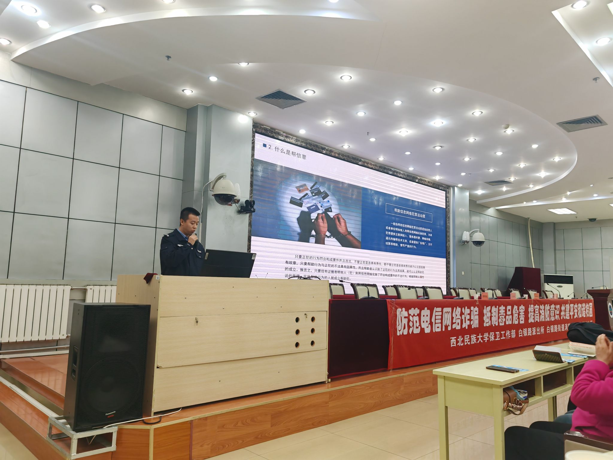 3月,红黑游戏 保卫工作部联合白银路派出所、夏官营派出所、榆中县反诈中心、白银路街道消防站、西北新村社区等单位开展防范电信网络诈骗和消防安全知识讲座。
