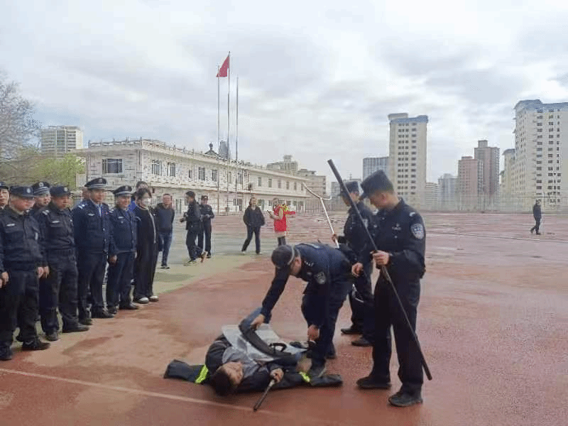 兰州市公安局白银路派出所干警结合高校实际,从高校突发事件的常见类型、防范知识、防爆器械的使用、实战演练、防范毒品以及消防安全等方面对全体人员进行了培训和实战演练。