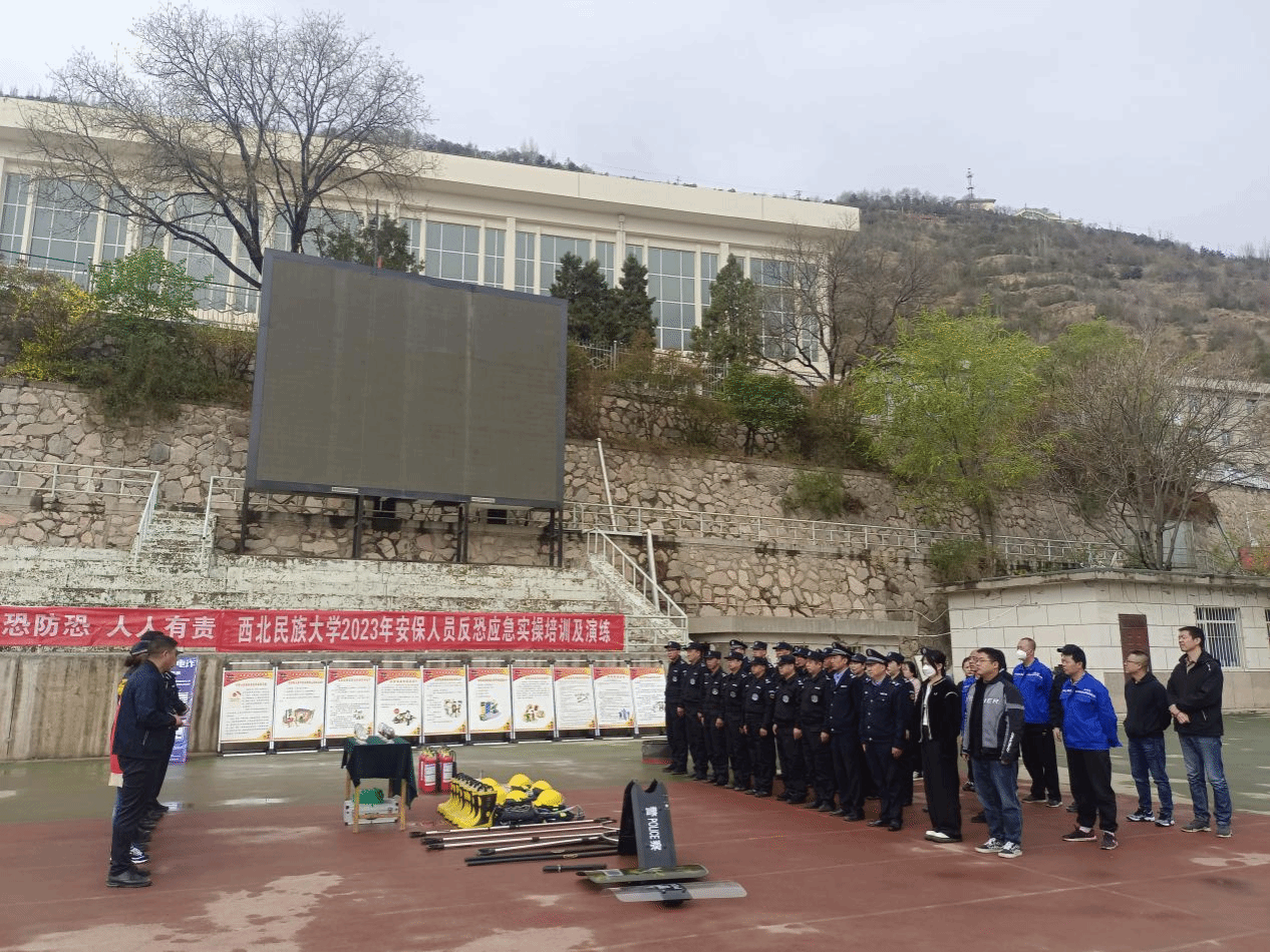 保卫工作部(处)联合兰州市公安局白银路派出所、白银路街道办事处等单位,在西北新村校区民和体育场开展反恐应急实操培训及演练,保卫工作部全体安保人员和工作人员参加了此次演练。