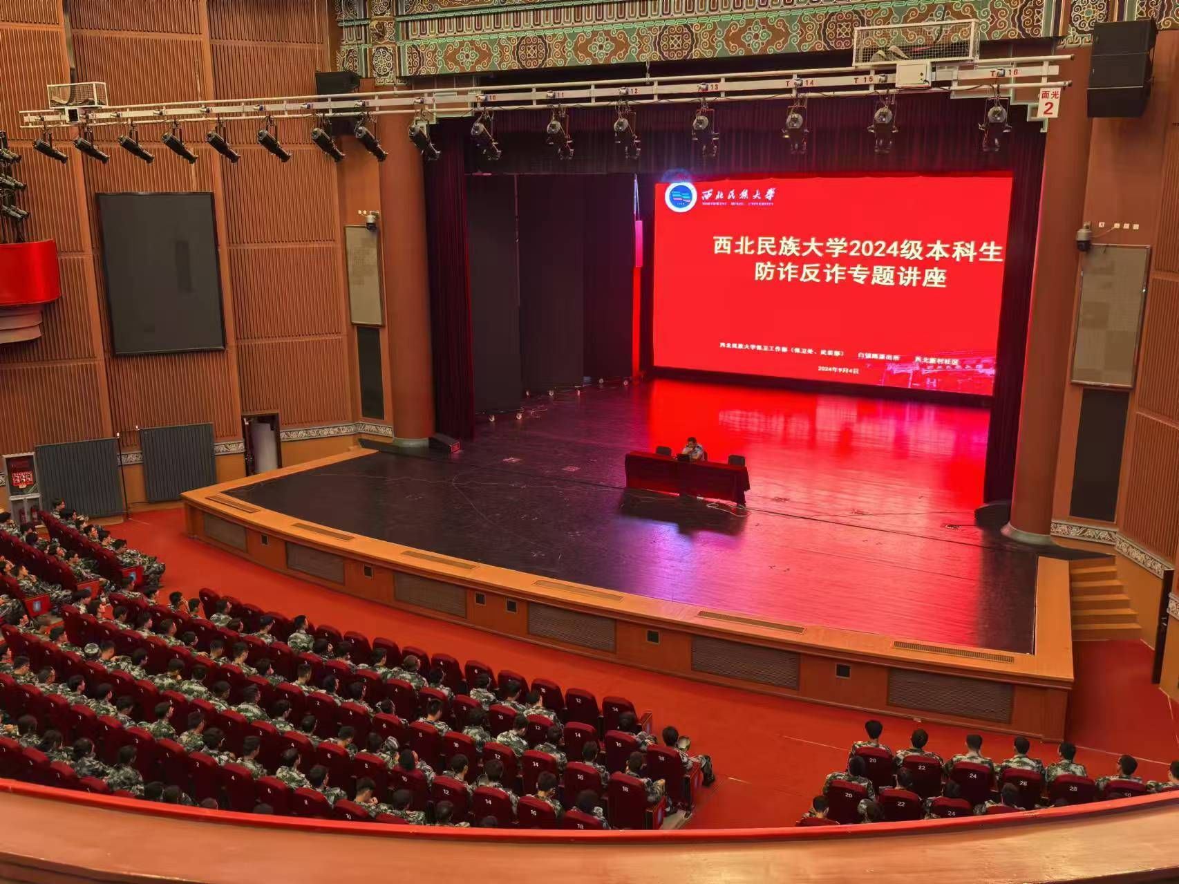 为进一步推进平安校园建设,提高大学生防诈反诈和消防安全意识,2024年9月4日,保卫工作部联合榆中县反诈中心、白银路派出所、西北新村社区等单位,在两校区针对6000余名2024级本科新生开展防诈反诈和消防安全知识讲座。
