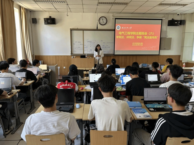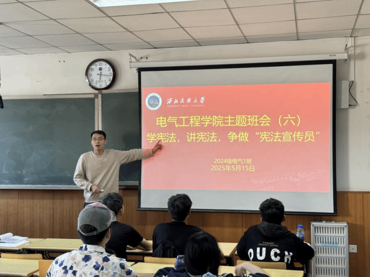 围绕“为什么学宪法”“宪法学什么”“如何做宪法宣传员”,班导师结合《法护一生》、“伴随一生的宪法”“某高校女毕业生求职被拒案”“明星网红补税案”等生动案例,阐释了宪法与公民身份的紧密关联,解读了宪法规定的根本制度、公民基本权利与义务,平等权、劳动权等与大学生息息相关的法律条款,强调了宪法作为“国家治理基石”“公民权利保障书”的重要作用。