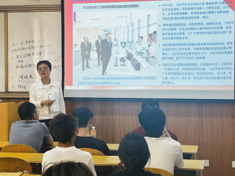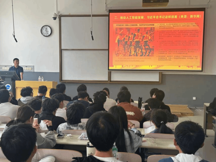 班会上,班导师领学了理论文章《学习进行时丨为青年取得的成就成绩点赞喝彩》《推动人工智能发展,习近平总书记这样部署》,深刻领悟“青年是祖国的前途、民族的希望、创新的未来”的殷切嘱托,以及人工智能作为战略性技术对国家发展的重要意义。
