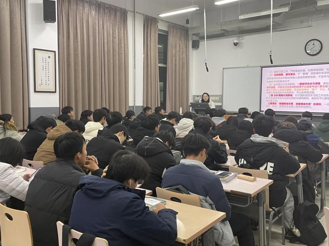 班会上还开展了校园安全教育,重点强调要杜绝违规使用大功率电器、禁止在公共区域随意张贴宣传品,并号召大家严格遵守校纪校规,共同筑牢校园安全防线。