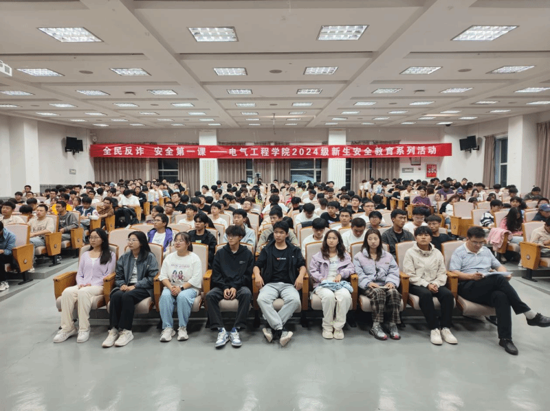 2024级全体新生举办“全民反诈——安全第一课”及“人人讲安全 个个会应急 全员保安全”消防安全知识专题讲座,全面提升2024级新生安全意识,增强他们防范诈骗和消防安全能力。