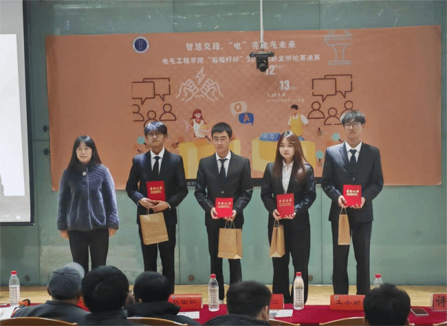 经过激烈角逐,最终来自电气工程及其自动化1班的代表队脱颖而出,赢得了本次辩论赛的冠军、2023级电子信息类3班代表队荣获亚军、2023级自动化1班代表队荣获季军、2023级电气工程及其自动化4班代表队荣获优秀奖、2023级电气工程及其自动化2班司喻心荣获最佳辩手。