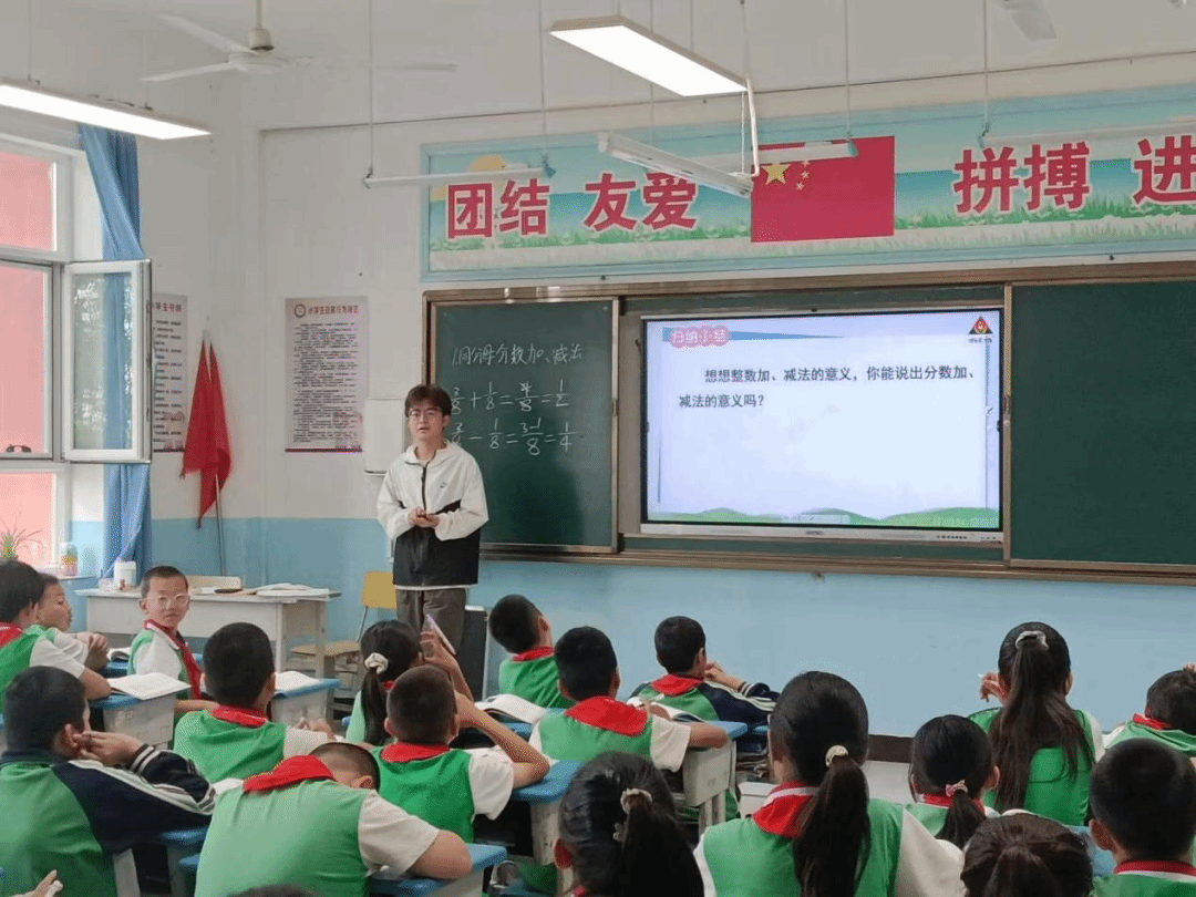 两位同学在校内肩负起“数学”“初等代数”等课程的教学工作,同时分别协助班主任打理五年级一班与五年级二班的班级事务,成了这八十四名各民族学生心中亲切信赖的“孩子王”。“咱们每个人都是中华民族大家庭里不可或缺的一员,就像分数中的分子。无论分子是何数值,都始终被分母温柔包容,永远不会逾越分母的边界。”数学课上,马虎巧妙地将民族团结一家亲与铸牢中华民族共同体意识的种子,借着生动的比喻播撒在讲台之上,更深深扎根进每一位学生的心田。