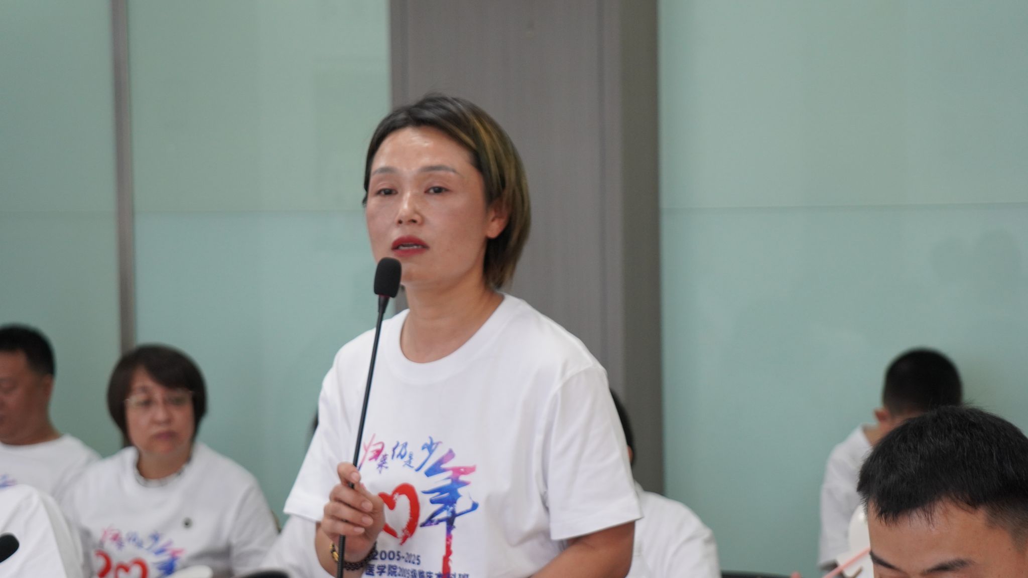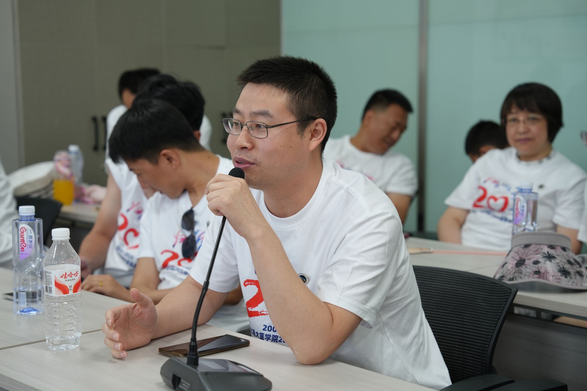 座谈会后,班主任金龙主持主题班会。他对校友返校表示感谢,寄语大家在岗位上继续发光发热,同时希望大家为母校发展多提宝贵建议。校友们敞开心扉,感恩母校培养,分享成长故事与奋斗历程,并围绕医学人才培养、临床实践教学等方面积极建言,为医学部发展提供诸多建设性思路。