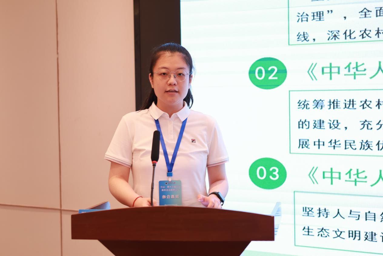 杨贺硕士研究生以“全域土地综合整治背景下农村生态治理的困境与法治应对”为题作主题发言,指出全域土地整治需以“生态优先”协调多规冲突,建议设立专门整治机构,对企业准入实行负面清单管理,拓宽社会资本参与渠道。