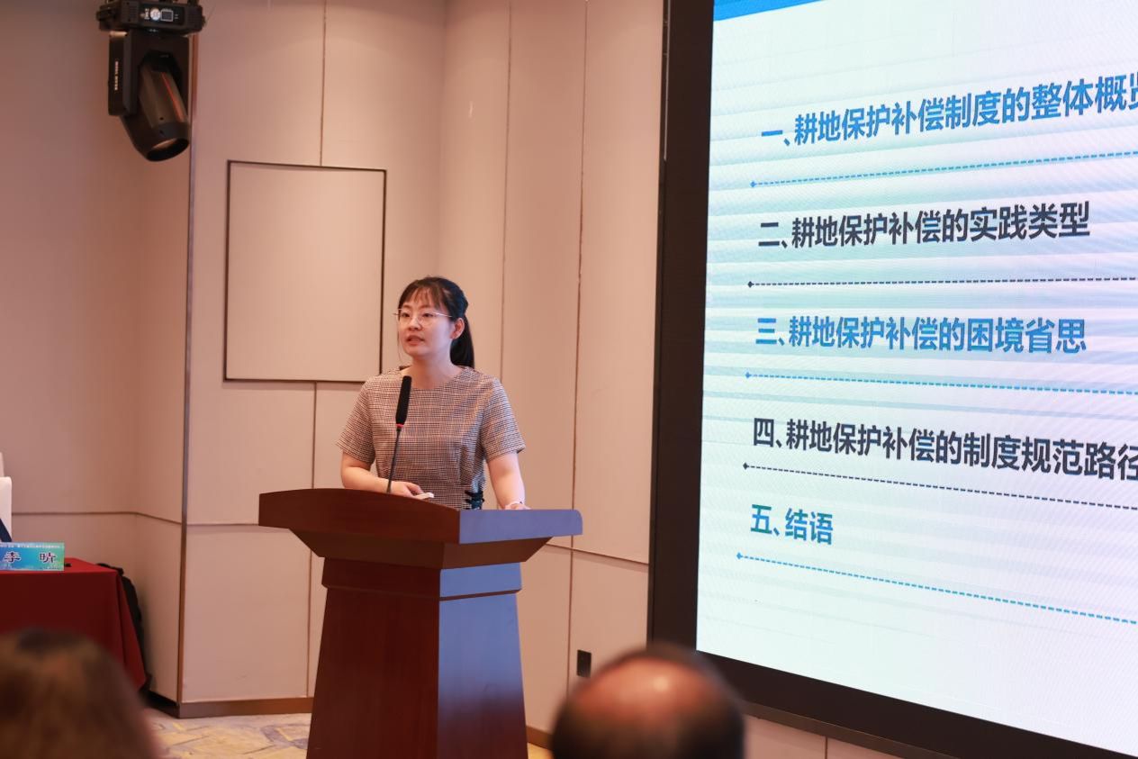 吕成副研究员以“我国耕地保护补偿的类型及法理依据”为题作主题发言,提出耕地保护补偿应二元区分:对农户“损失补偿”(发展权受限),对地方政府“区域发展权补偿”,否定土地发展权私有化理论,强调补偿标准需体现公共利益平衡。