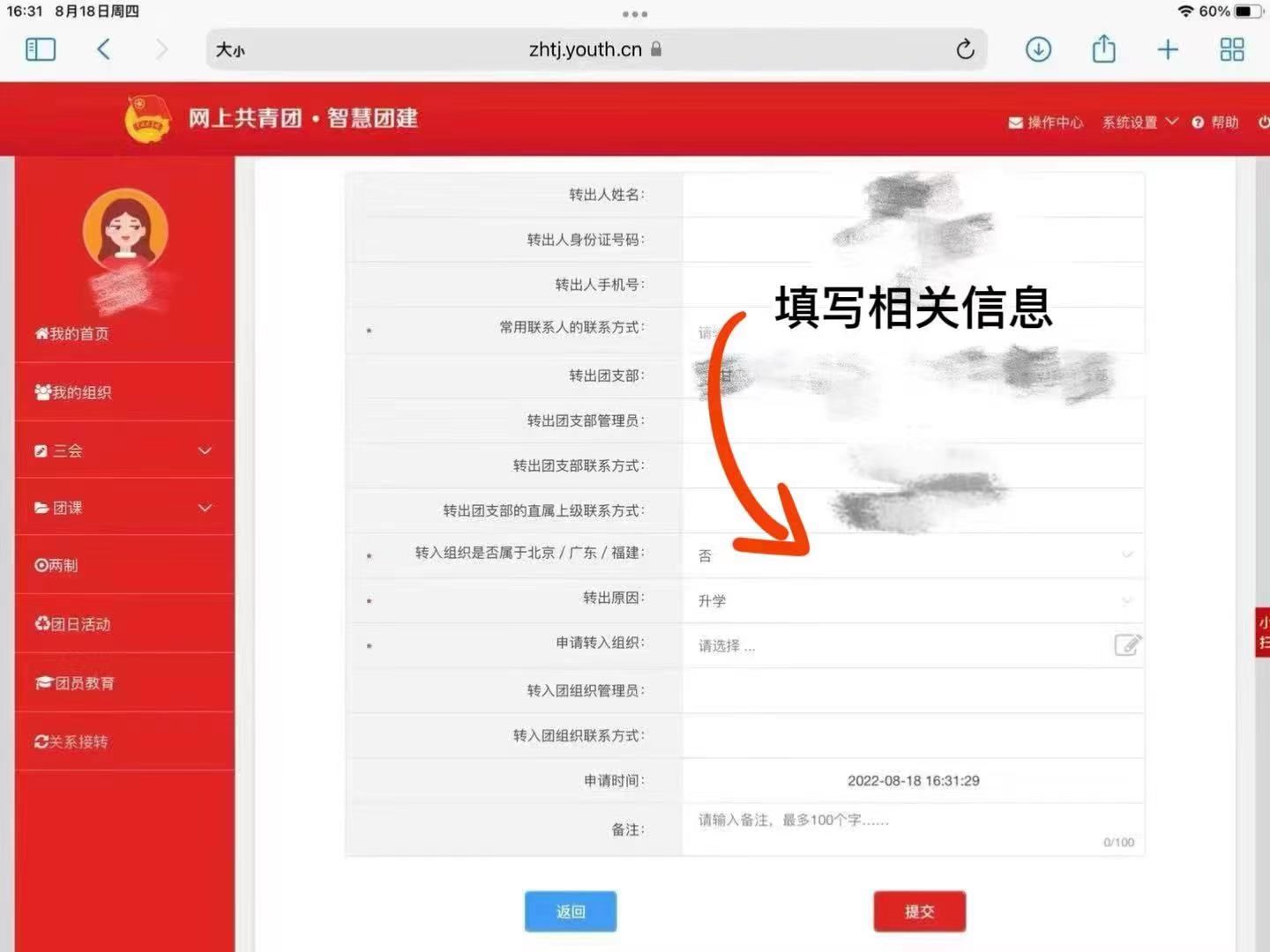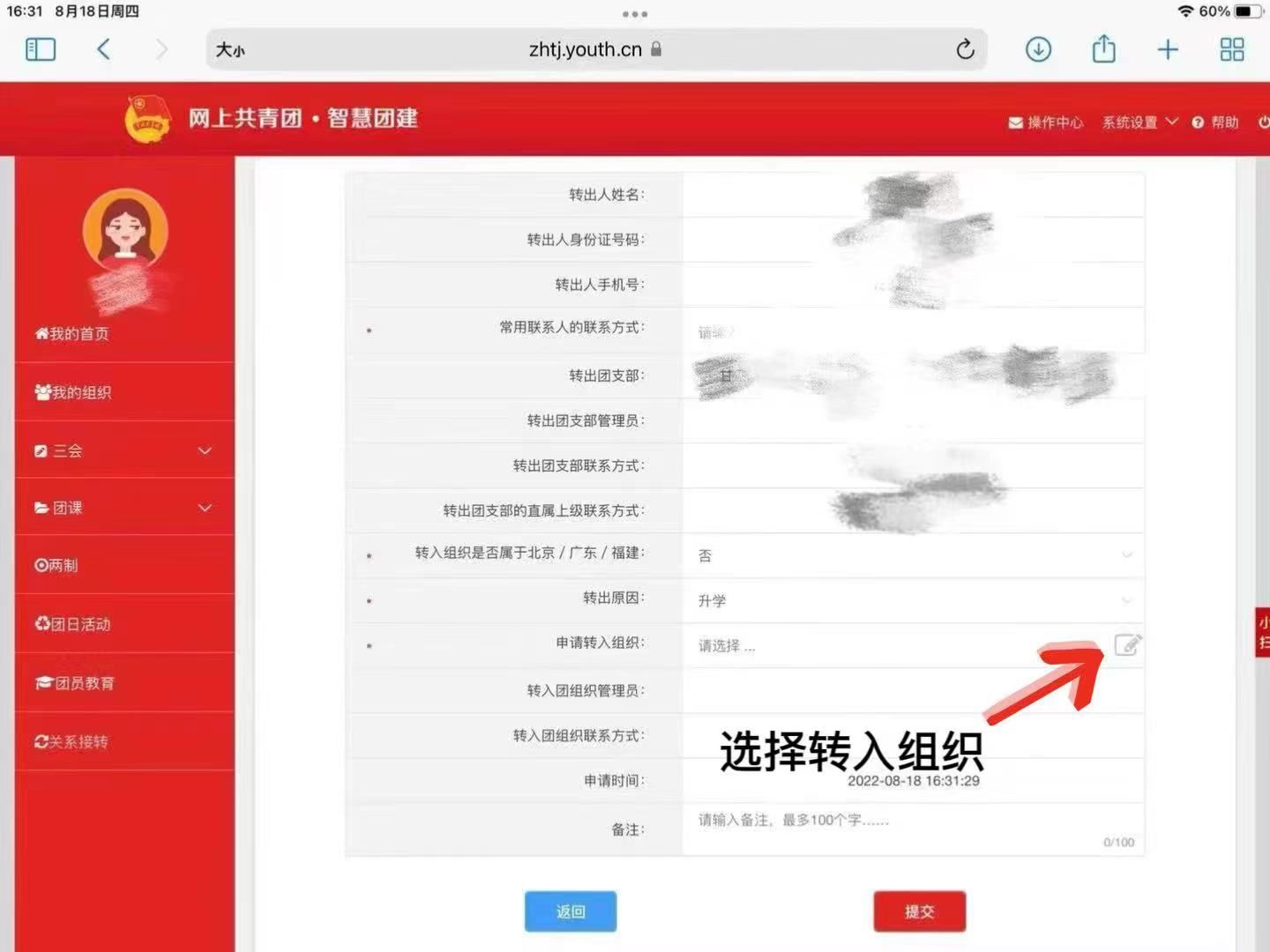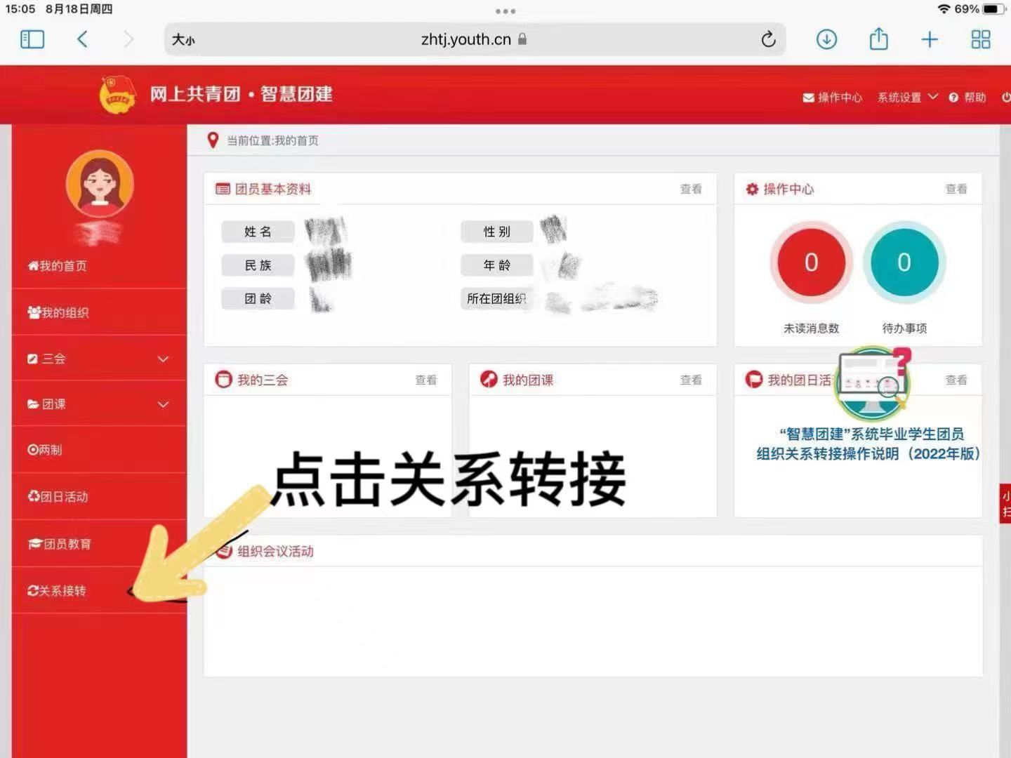 第三步:进入智慧团建,点击“关系转接