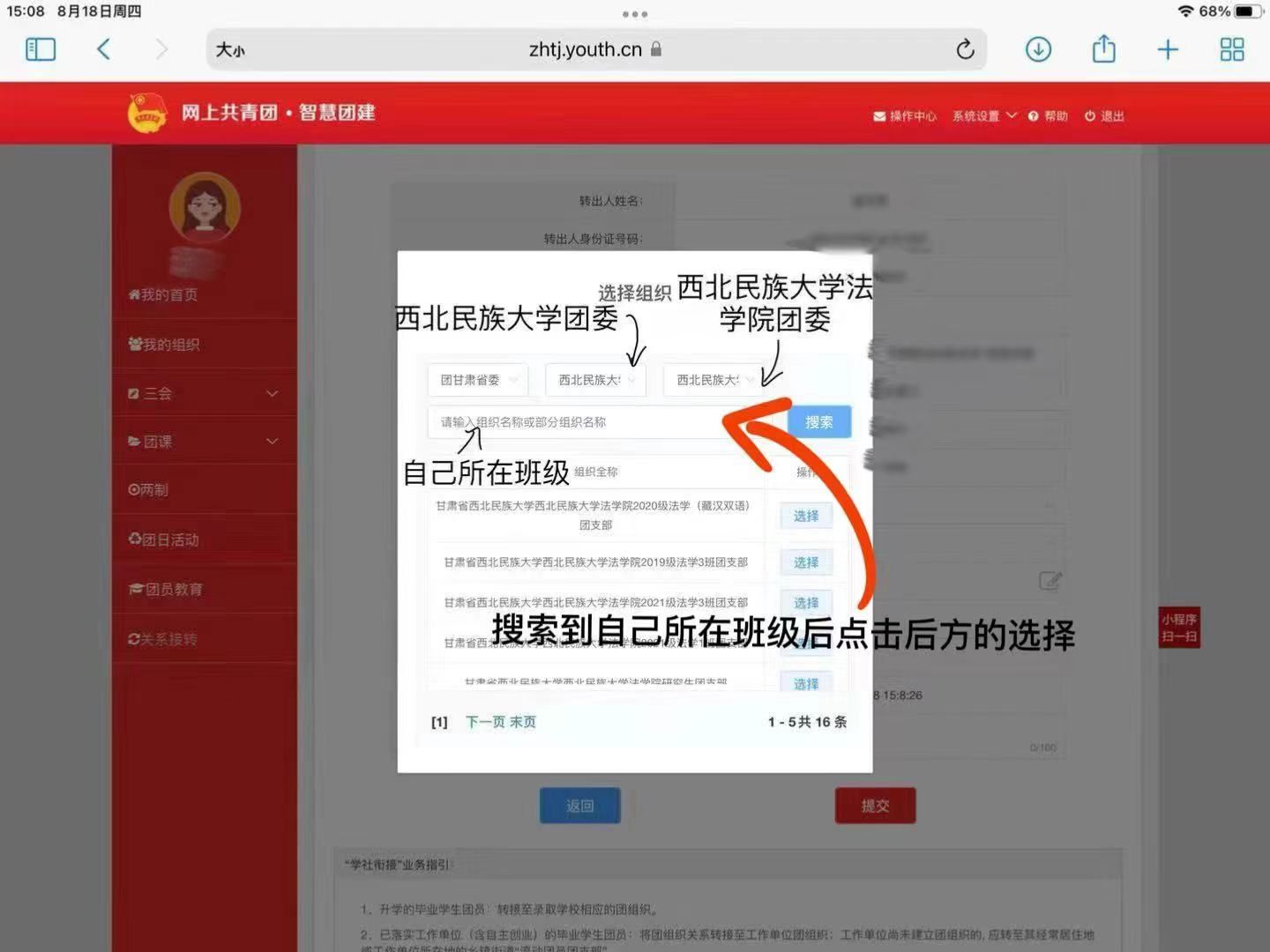 第六步:找到自己所在团支部,点击“选择”