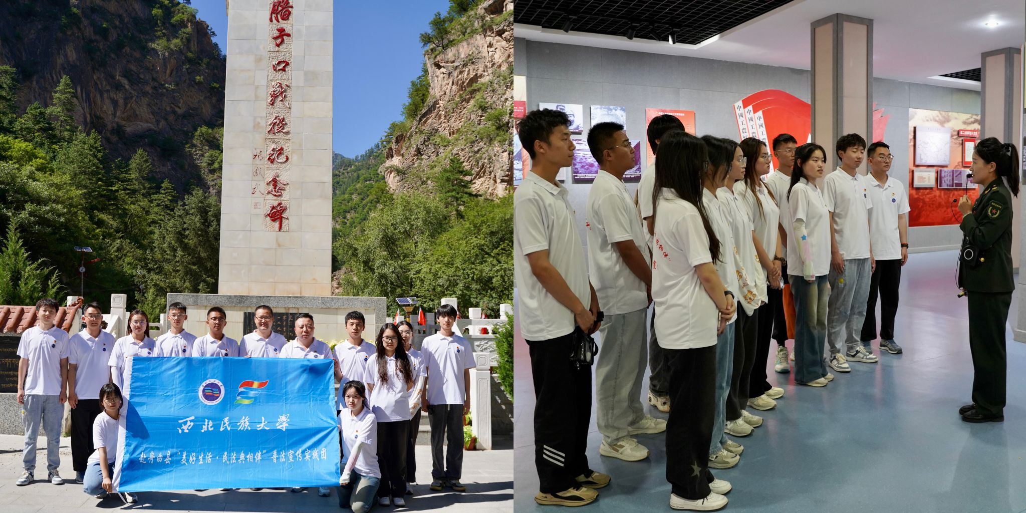 途中,实践团成员来到腊子口战役纪念馆开展红色教育,通过参观历史图片、长征文物、观看纪录片、聆听讲解等,仿佛回到了那个战火纷飞的艰难岁月,同学们接受了一次生动深刻的革命传统教育。追忆峥嵘岁月,缅怀丰功伟绩,感悟红色经典,必将使同学们进一步增强爱国意识,坚定理想信念,传承红色基因,奋力走好新时代的长征路。