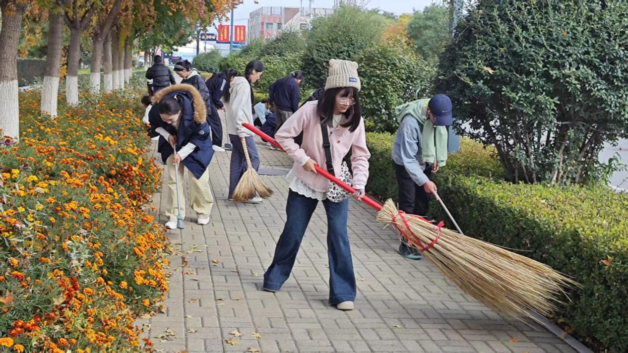 志愿者们携带清洁工具,对教学楼周边道路、绿化带、公共活动区等场所进行了全面清扫。在劳动过程中,同学们分工明确,配合默契,针对台阶缝隙、绿化带边缘等区域,志愿者重点开展清理作业。