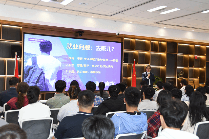 随后,蒋鑫鹏律师结合自己丰富的实践经验和执业经验,从律师行业的最新动态出发,详细分析了当前律师行业的现状、律师行业特殊性及未来的发展空间,点面结合、细致具体、毫无保留地分享了青年律师的成长经验与路径选择,使同学们对律师行业有了更深入的了解,为今后从事律师行业有了全新的思考。在现场互动答疑环节,同学们就自己关心的问题积极与几位律师进行交流互动,几位律师从理论和司法实践多个角度给出了合理的建议,现场互动气氛热烈。