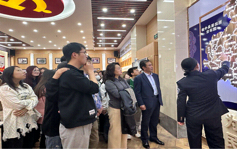 师生们抵达榆中县公安局,公安局的民警对师生们的到来表示了热烈欢迎,简要介绍了公安局的基本情况和主要职能。随后,师生们参观了办公区、审讯室、法医鉴定室等部门和党建活动室,深入了解了公安工作的日常运作和执法流程,体验了“为民式”服务、数字化公安、“一站式”矛盾化解等工作机制,观看了智慧公安的运行情况,切身感受到了榆中县公安局在辖区管理、案件办理、纠纷化解等方面的特色和亮点。