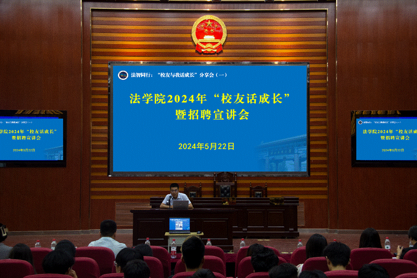 于5月22日在模拟法庭举办了“校友话成长”分享会暨招聘宣讲会。本次活动邀请了法红黑游戏