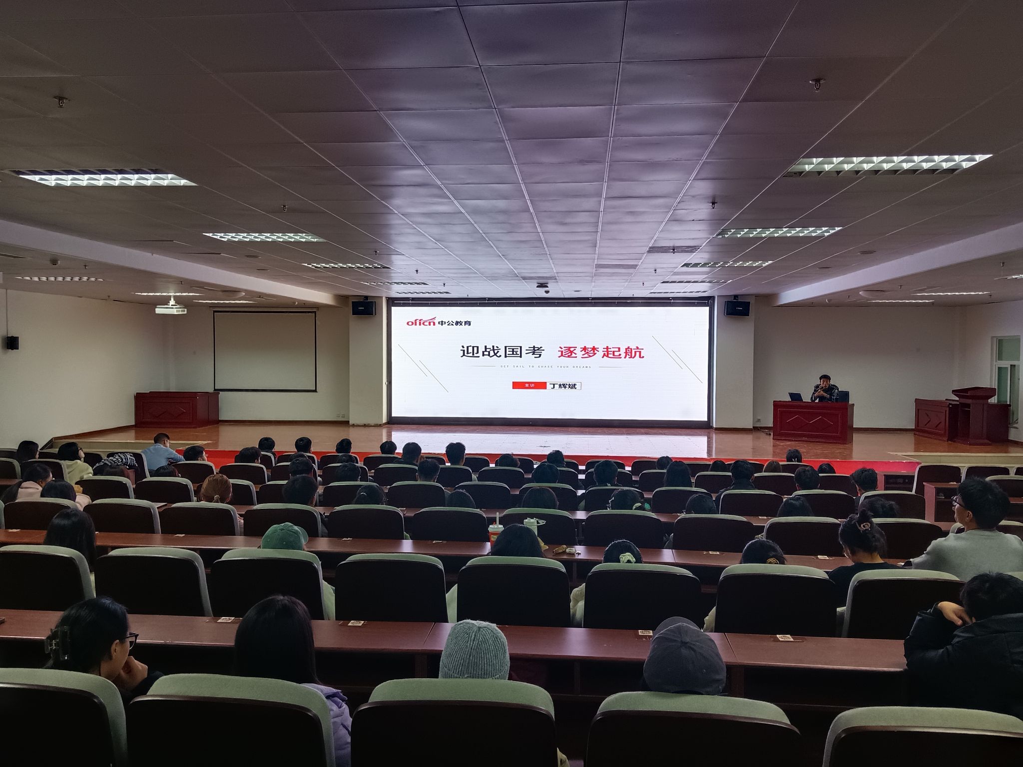 承办的国考备考讲座在榆中校区顺利举办。本次讲座由中公教育丁辉斌老师主讲,共100多名毕业生参加进行。