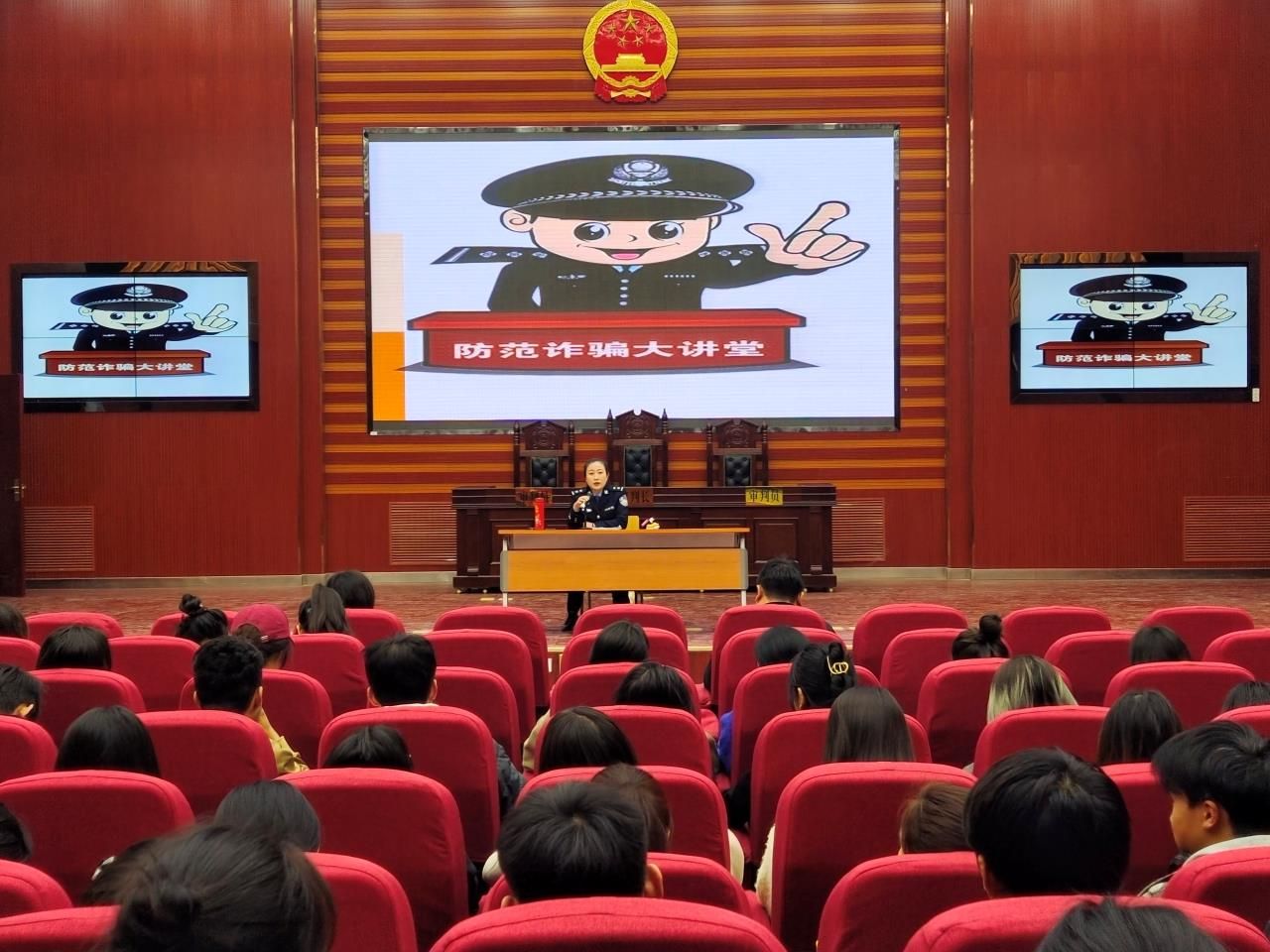 保卫处老师在榆中校区模拟法庭开展2023年防范电信网络诈骗专题讲座,通过案例分析、讲解反诈技巧、现场互动等形式,增强红黑游戏