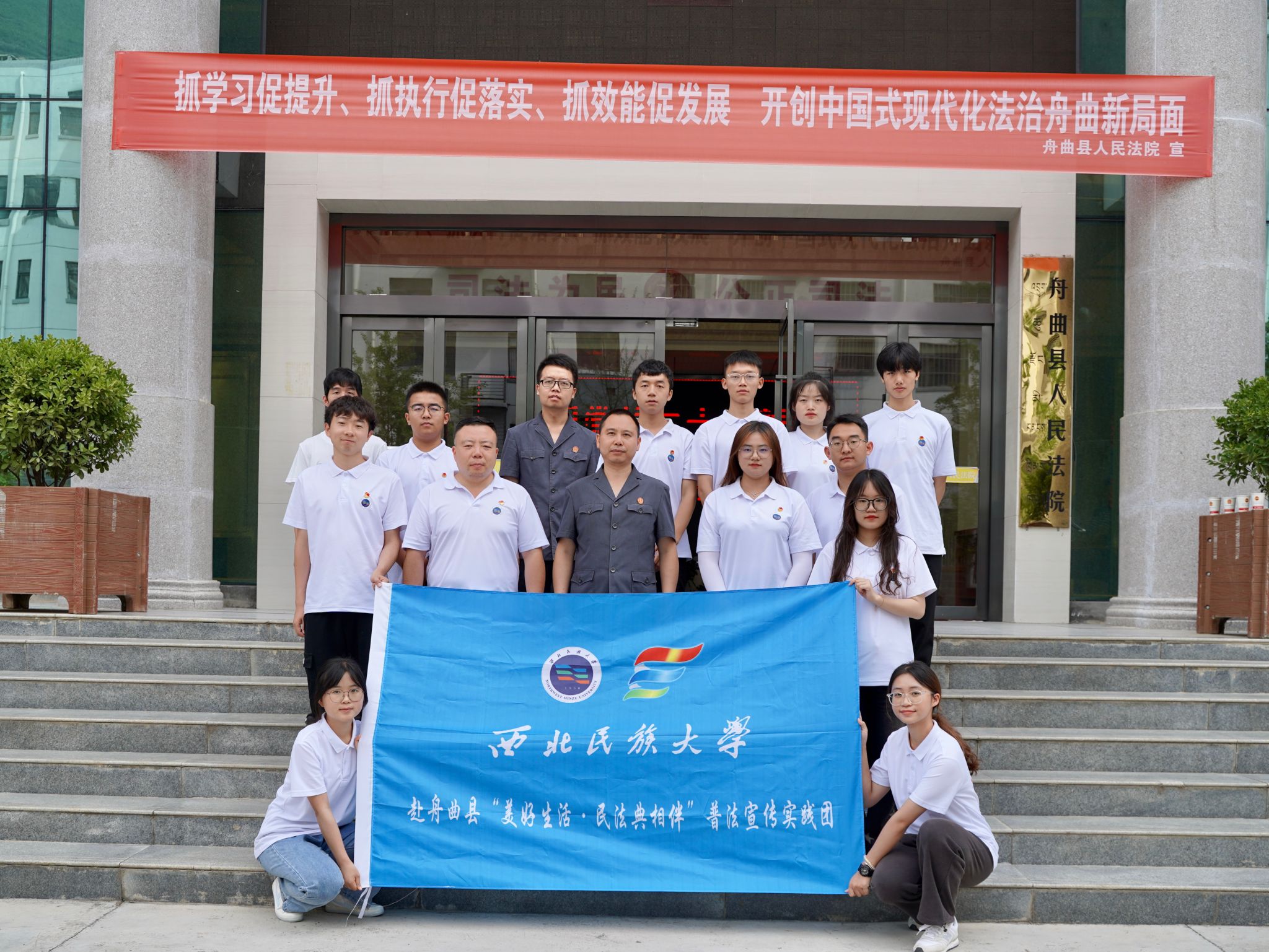 强化实践育人,创新培养模式。活动的最后一天,实践团前往舟曲县人民法院开展实践教学,了解基层法院工作运行情况、旁听庭审现场。通过此次实践教学,实践团成员感受到互联网技术带给司法实践的便利性与高效性,体会到基层法院工作的艰辛与不易,更对法治中国建设充满了信心。