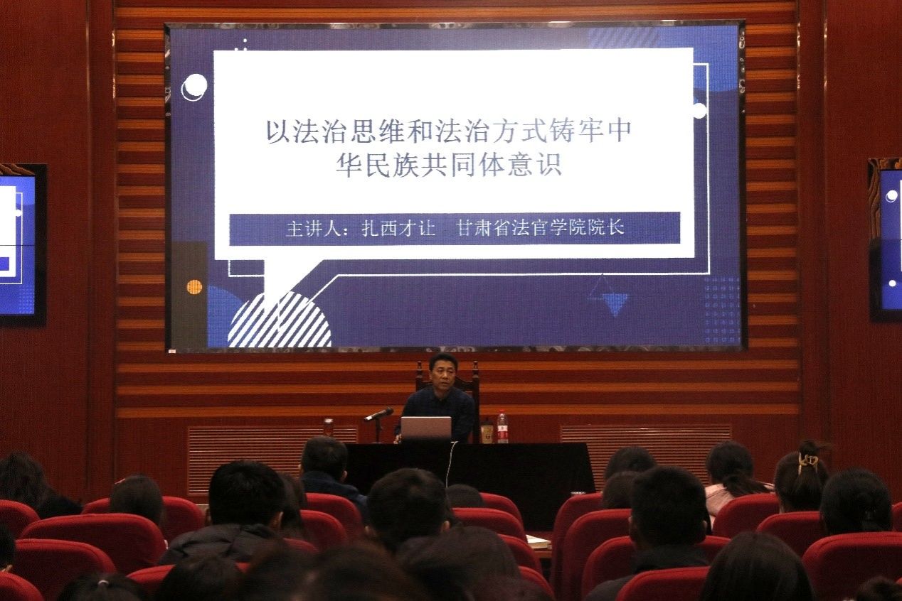 扎西才让院长以“中华民族共同体意识”的藏语翻译为例,强调了法律概念、专业术语准确翻译的重要性。以藏族地区草山纠纷处理实践中的调解为例,说明了调解对于法律治理的重要补充作用。最后紧扣“以法治思维和法治方式铸牢中华民族共同体意识”主题,从概念厘定、提出与发展、重大意义三个方面,阐明了全面依法治国、铸牢中华民族共同体意识的基本要求和重大意义,以及如何以法治思维和法治方式有形有感有效铸牢中华民族共同体意识。