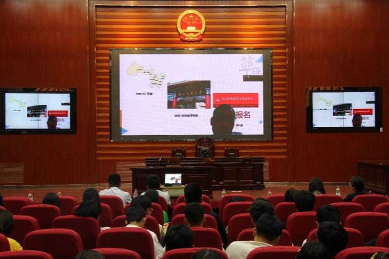 2020届校友闫志恒,现为甘肃泽锐律师事务所执业律师,他从律师实际业务方面做了介绍,并提出律师行业要做到八个字:敬业、专业、口才、写作。勉励同学们要持之以恒才能行稳致远,在校期间要加强表达、写作、沟通能力的训练,珍惜时间,锻炼身体,结合专业实际加强实践训练。最后,他介绍了甘肃泽锐律师事务所的基本情况和岗位需求,欢迎同学们积极加入。