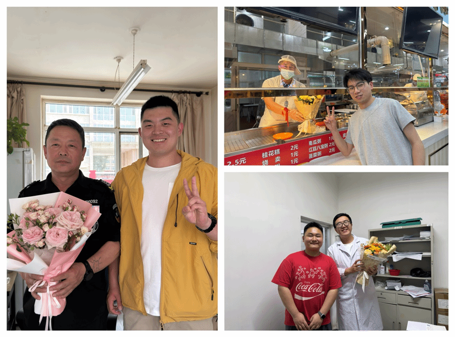 2025届毕业生以一场充满温情的感恩行动,向校园里的“幕后守护者”—校车驾驶员、医护人员、安保人员、公寓管理员、食堂工作人员及保洁阿姨送上鲜花与祝福,用实际行动表达对服务保障人员四年来默默奉献的诚挚谢意。