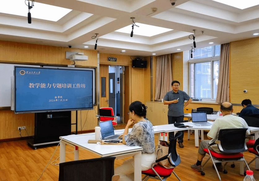 组织了教学能力培训工作坊,王天雁副院长围绕OBE理念、BOPPPS教学设计、课程信息化建设等内容进行了专题培训,并就雨课堂、超星学习通等信息化工具进行了实操演示。老师们积极参与学习、交流,现场还集体进行了教学大纲撰写和教学设计演练,进一步提升了新形势新要求下教学材料撰写能力和教学设计能力。