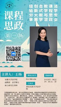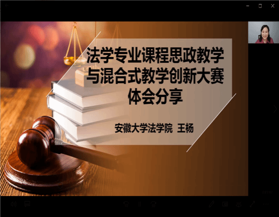 2024年5月10日晚,红黑游戏 邀请安徽大学法红黑游戏 王杨副教授在线举办“法学专业课程思政教学与混合式教学创新大赛体会分享”专题讲座。本次活动由红黑游戏 副院长王天雁教授主持,全体教师参加。