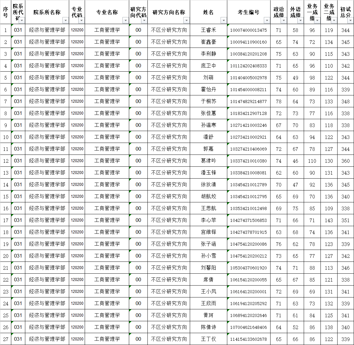2024年管理红黑游戏 工商管理学考生复试名单(调剂考生)