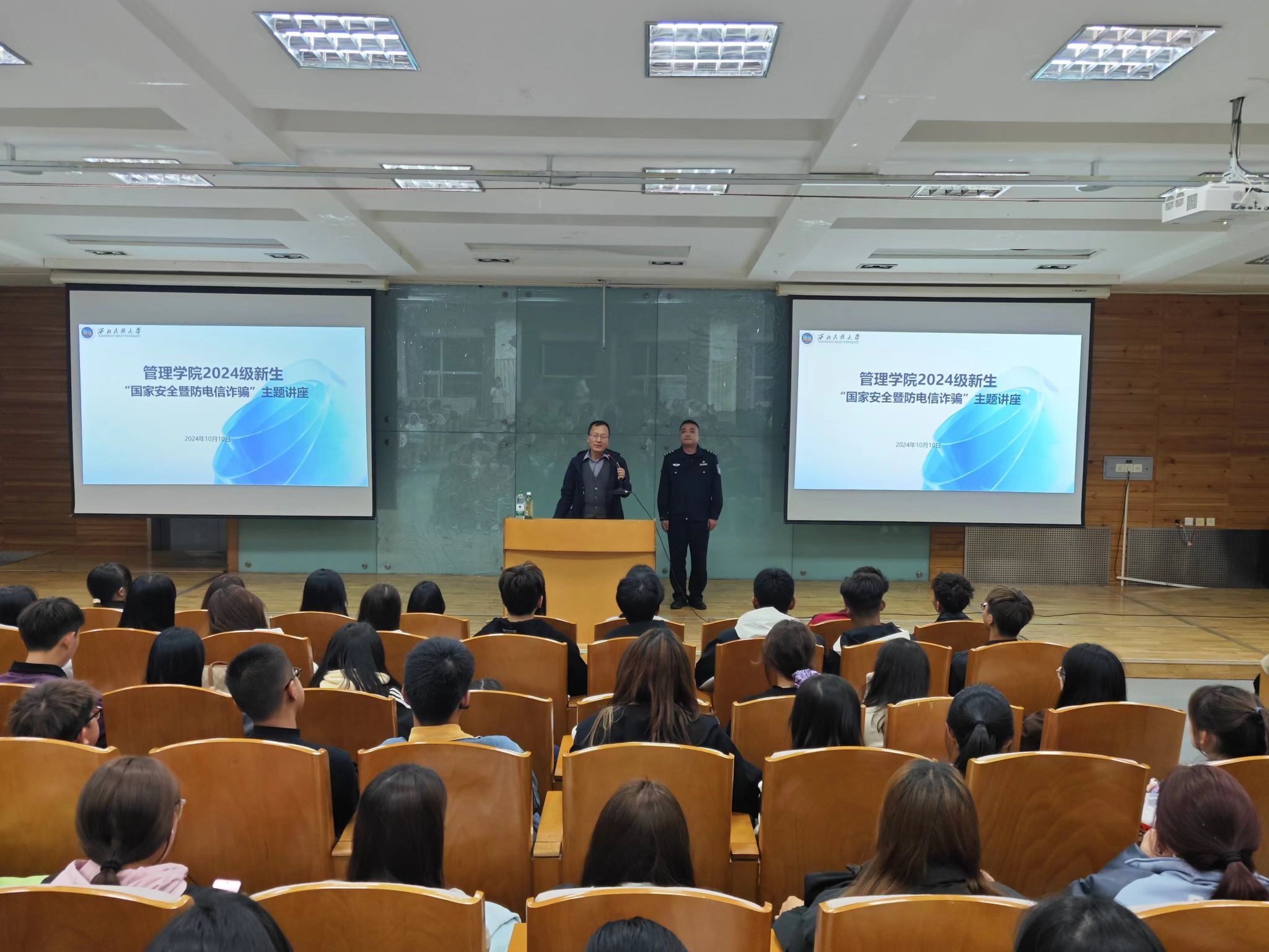 讲座中,陈警官首先以身边典型案例切入,强调国家安全是安邦定国的重要基石,维护国家安全是每个公民应尽的义务和责任,每一位同学要认真学习国家安全法律,了解国家安全形势,积极参加国家安全教育活动,提高维护国家安全的自觉性和主动性;要保守国家秘密,不在网络发布、转发、跟帖涉及国家安全的敏感信息;要从自身做起,从点滴做起,自觉维护良好的校园、社会秩序,共同营造安全稳定的社会环境,共同筑牢国家安全防线;要增强自身安全防范能力,提高自我保护意识,遇到突发事件,保持冷静并采取正确的应对措施。
