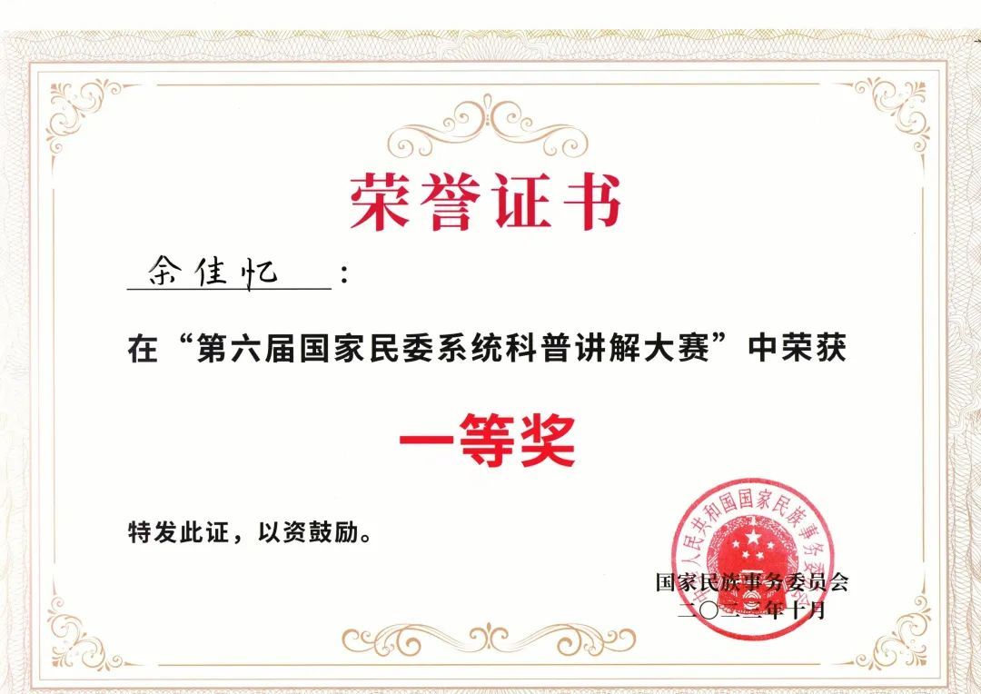 代表队获第十三、第十四届全国民航服务技能大赛综合组亚军、民航服务形象与礼仪一等奖;学生余佳忆两次获国家民委系统科普讲解大赛一等奖并代表国家民委参加全国科普讲解大赛,同时选送的其他3名学生获二等奖。