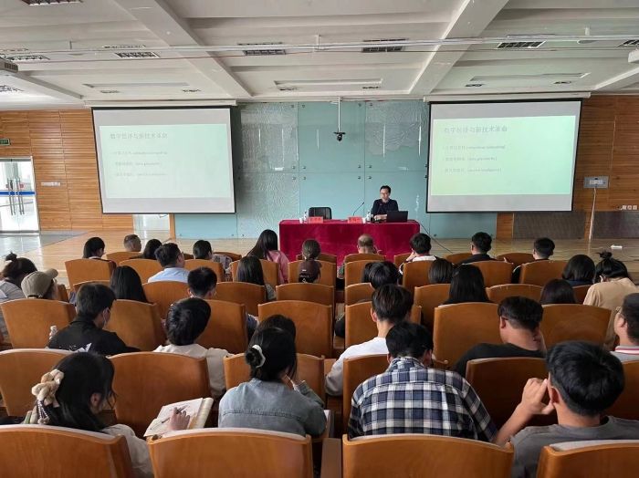 李伯一从信息技术革命(ICT)的演化路径,以及持续的耦合增益效应:“新经济”的发展动力、面向创新的创新、数字经济与新全球化运动等方面讲解,深入浅出解读数字经济创新范式。整场讲座内容丰富新颖,现场气氛活跃、互动频繁。孙永龙在总结讲座内容时强调,本次讲座深具前瞻性,从国际视野、前沿角度对数字经济创新问题进行了详细解读,有效拓展了师生国际视野,让大家对数字经济领域前沿动态有了新的认知。