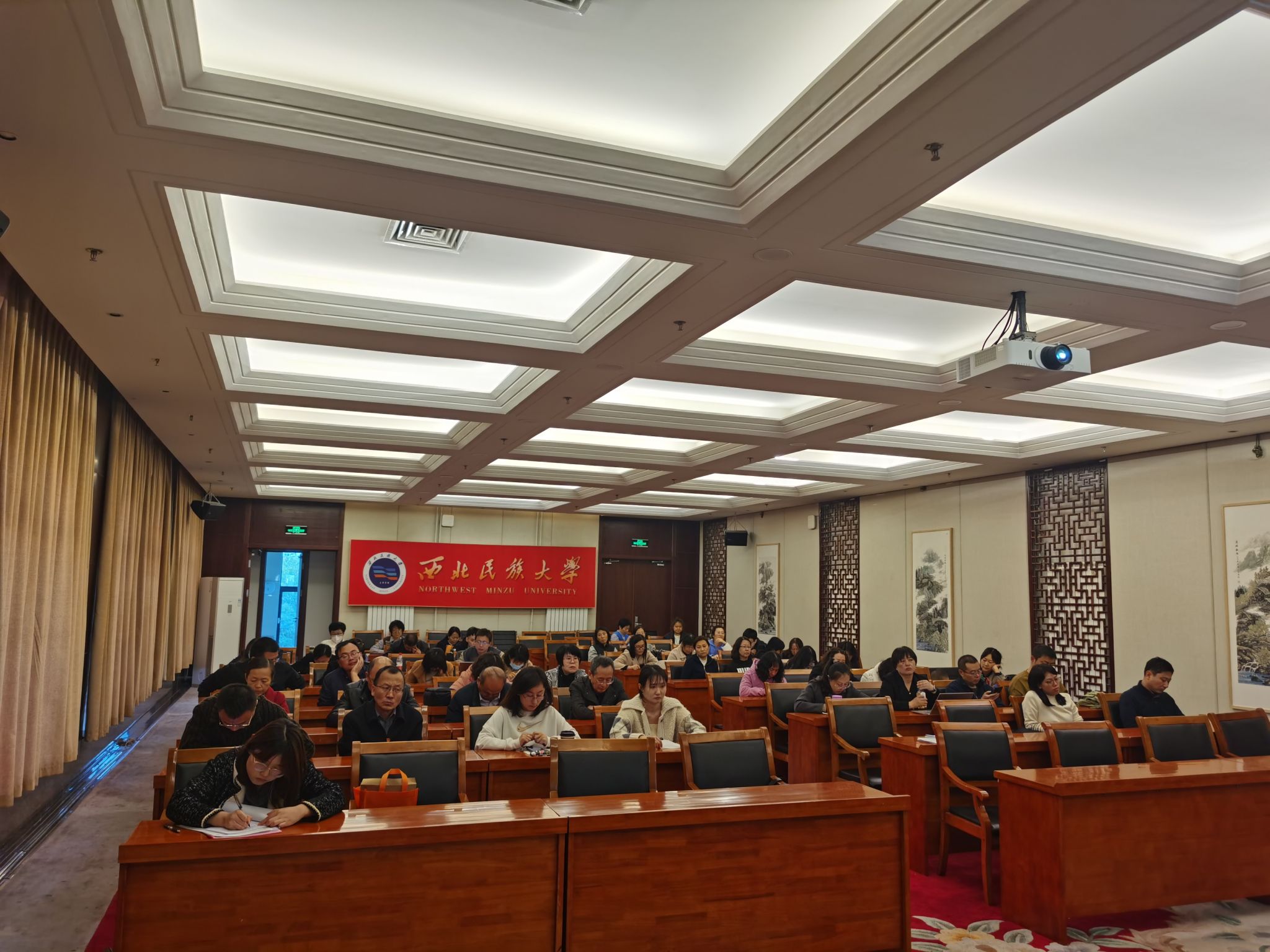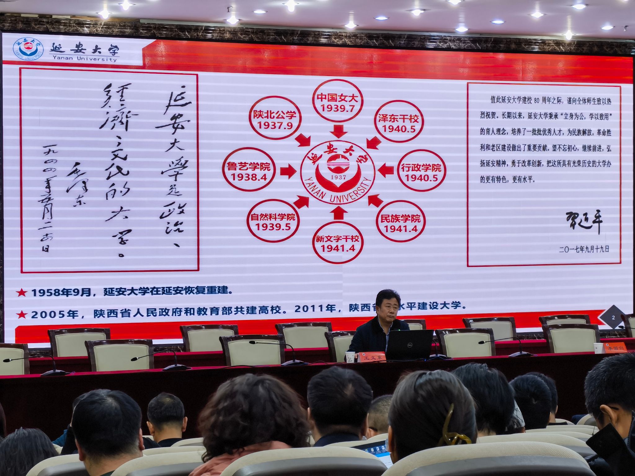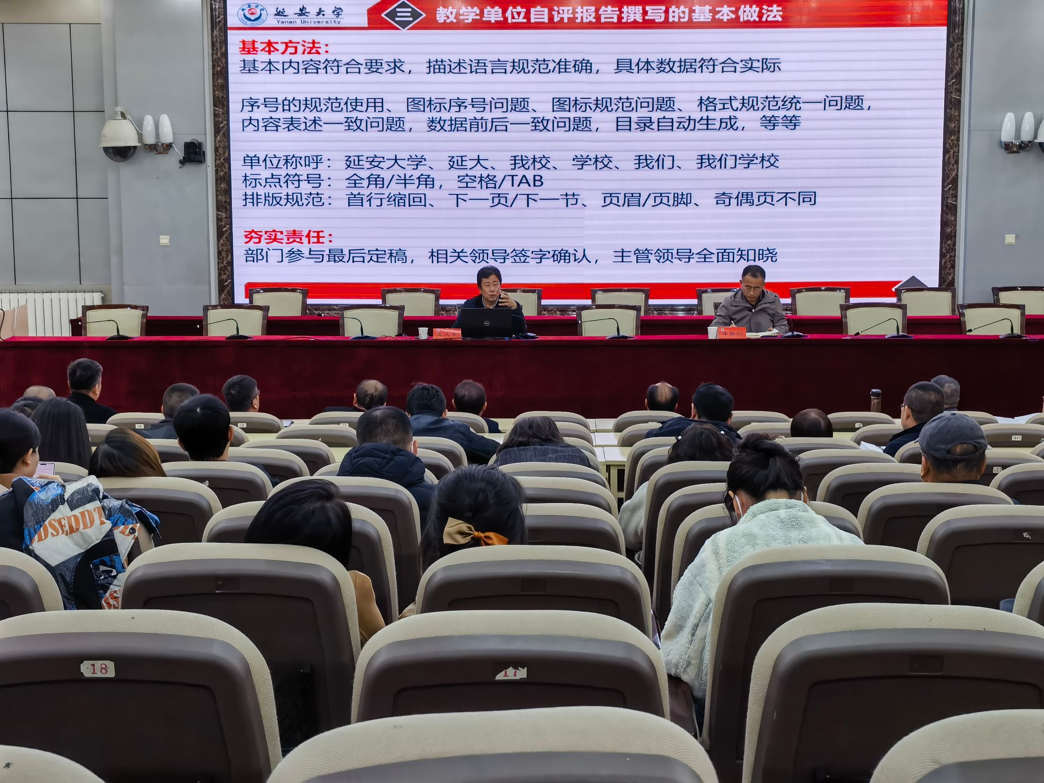 全体教职工参加,会议邀请延安大学教学质量监控与评估处处长王文东教授作了专题培训。