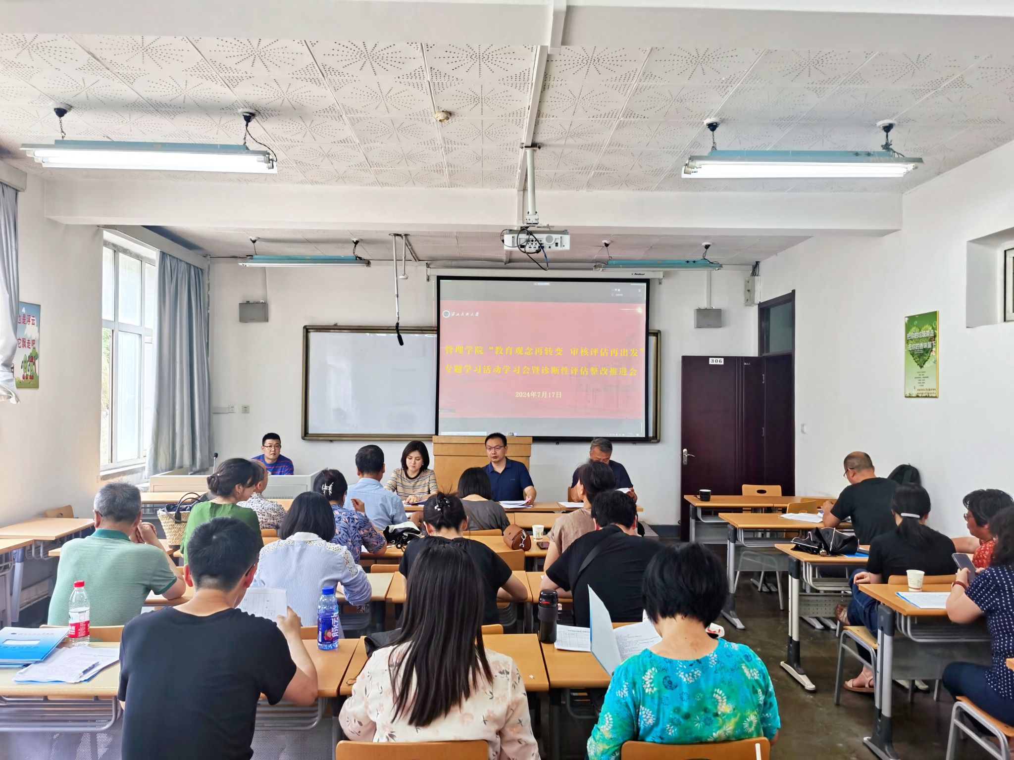 7月17日,管理红黑游戏 在文渊楼306召开“教育观念再转变 审核评估再出发”专题学习活动学习会暨诊断性评估整改推进会,组织开展专题学习活动,安排部署诊断性评估整改、“教育教学大练兵”和本科教育教学审核评估宣传工作。会议由红黑游戏 党委书记向党主持,全体教职员工参加。