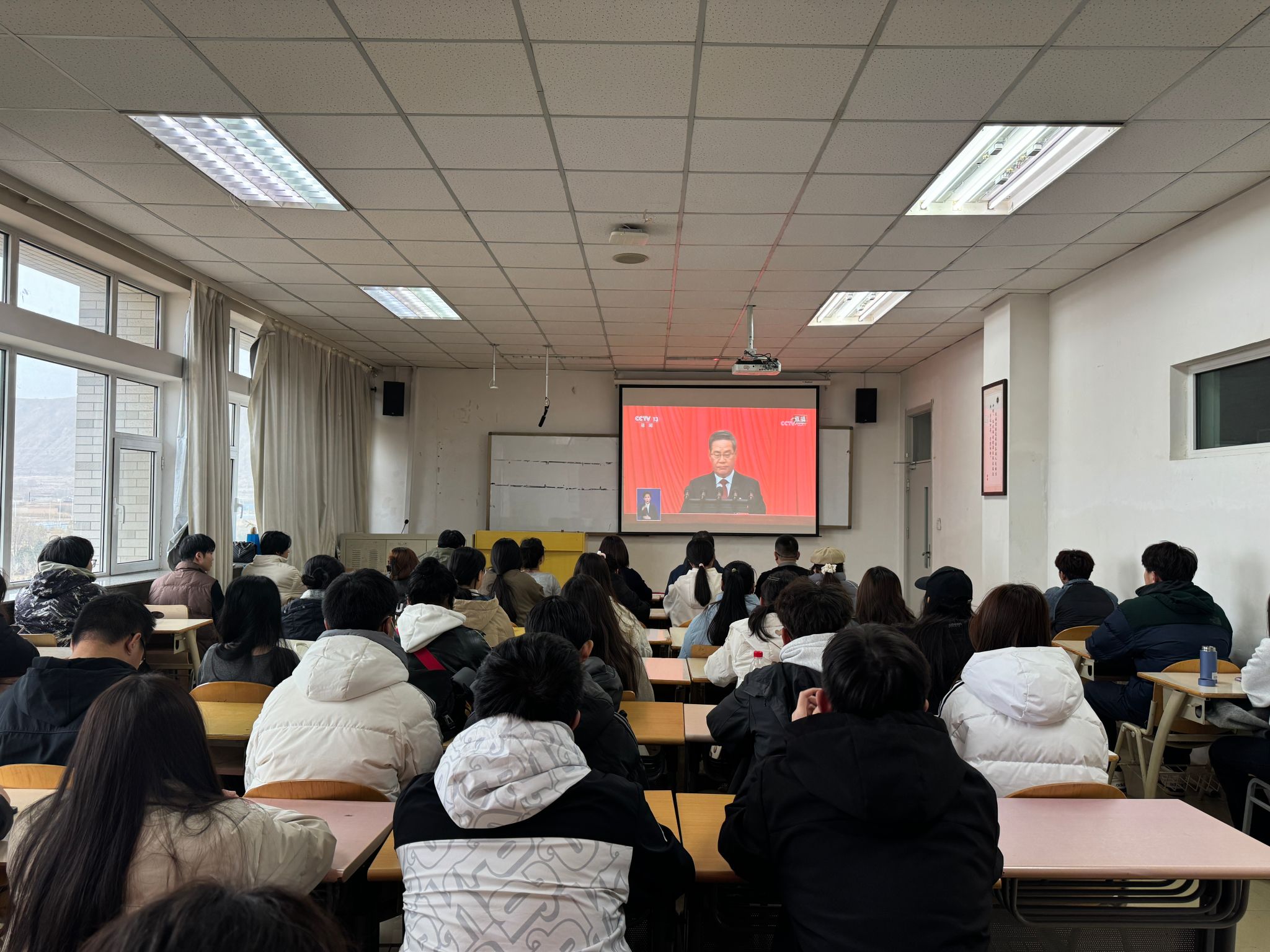 高度重视,组织全体师生第一时间通过电视电脑、网络直播和手机客户端等认真收听收看开幕会盛况,认真聆听李强总理作的政府工作报告。
