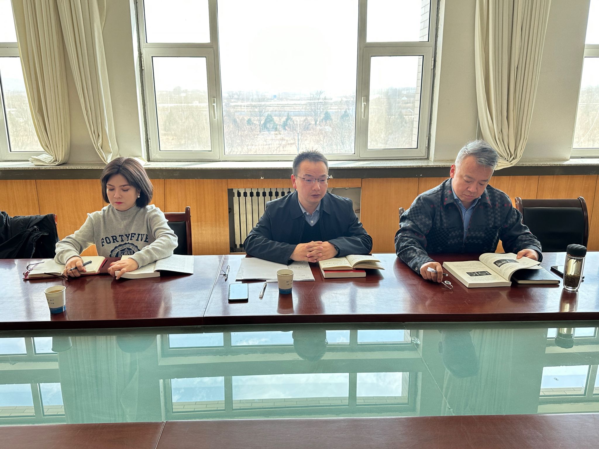 党委书记向党主持,党委委员结合学习体会和工作职责作交流发言。