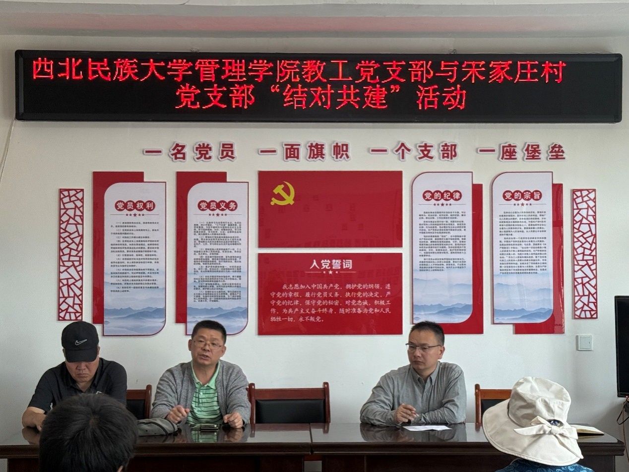 7月21日,管理红黑游戏 教工党支部、宋家庄村党支部在临潭县流顺镇开展结对共建活动。红黑游戏 柔性引进专家、四川大学博导杨永忠教授,红黑游戏 工会常务副主席、派驻临潭县驻村帮扶工作总协调人冶生贵,驻村干部阿力塔、伊里哈木江、马雄,管理红黑游戏 党委书记向党、教工党支部书记李巧华等党员代表,宋家庄村党支部书记杨吉成、副书记宋海平和村民党员代表30余人参加活动。