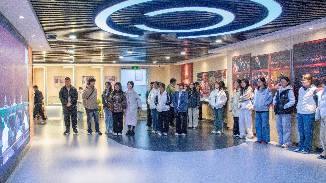 随后,大家来到西北新村校区《黄河大合唱》展览馆观展。作为中华民族精神的伟大象征,《黄河大合唱》那激昂的旋律和磅礴的气势,早已深入人心。在展览馆,师生通过历史照片、创作手稿、音像资料、实物史料以及现代科技手段的呈现,重温了这首不朽乐章诞生的背景、创作历程及其产生的巨大影响,深刻感受到其中所蕴含的顽强拼搏、团结一心的中华民族气节与革命乐观主义精神。