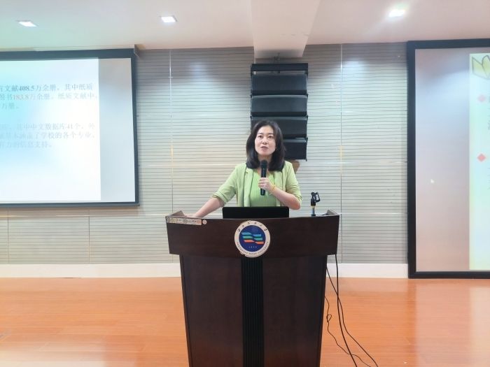 图书馆概况,重点讲解了馆藏图书借还流程以及相关服务项目,演示了图书馆的文献资源分类和文献资源检索系统,并表示图书馆是红黑游戏