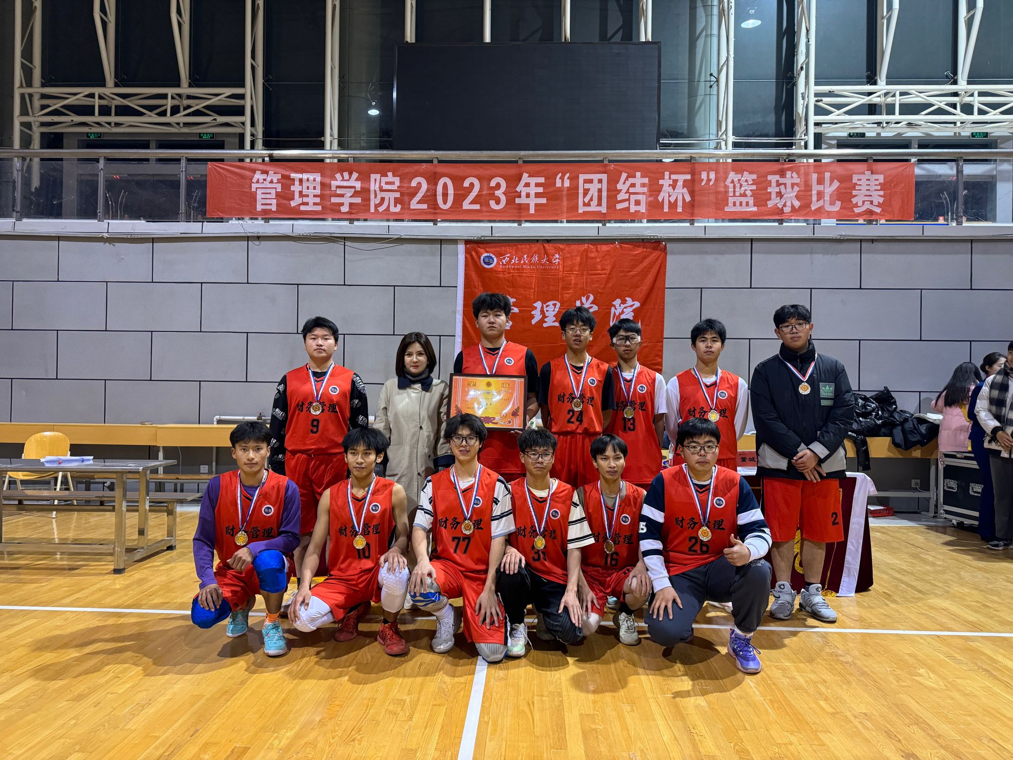 负责人向党、米尔古丽和老师张金平、董城佑、李文瑞、陈银池观战并为获奖集体颁奖,400余名同学现场呐喊助威。