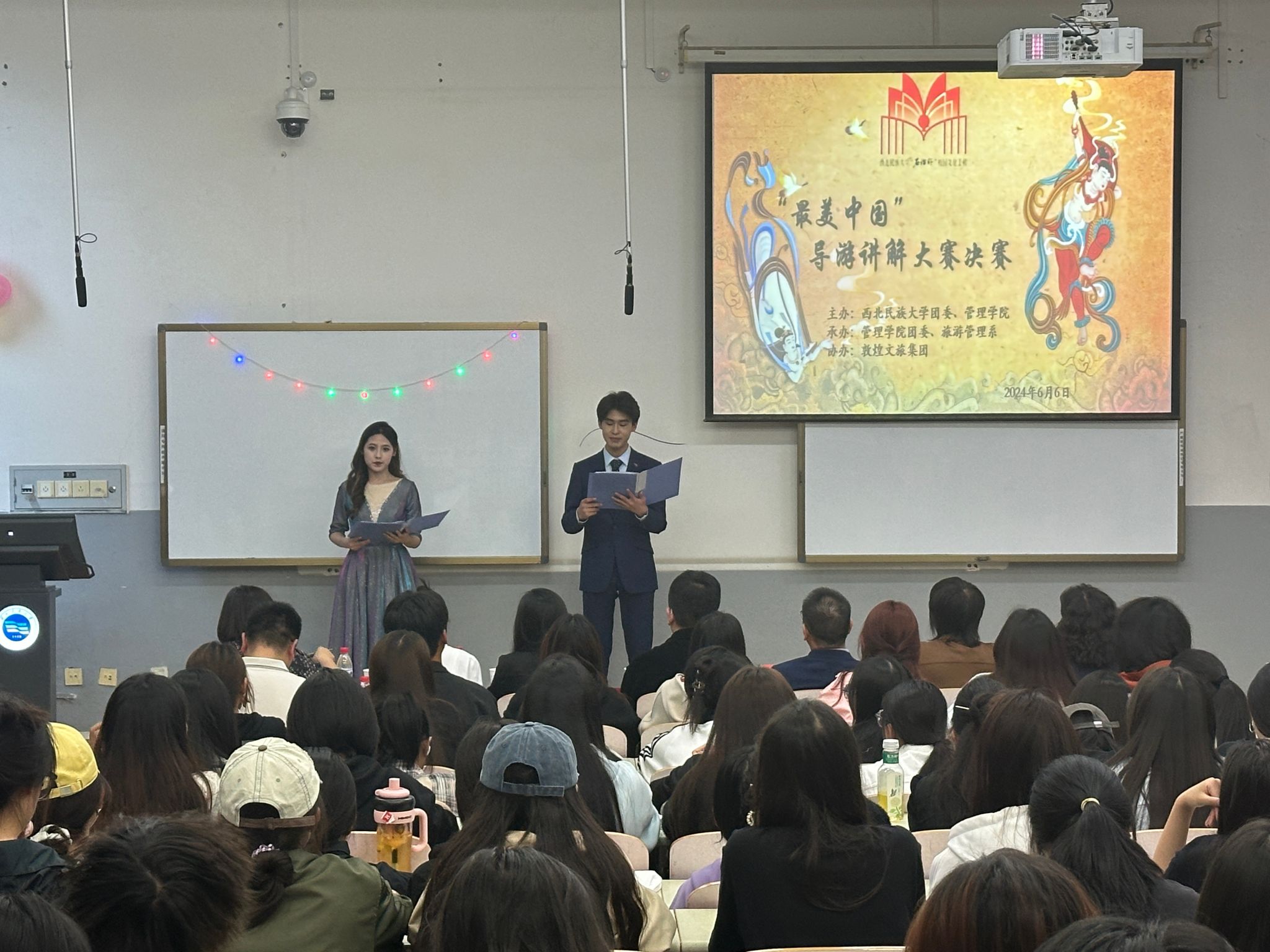 (部)的30名参赛选手经过初赛、复赛的激烈比拼,最终8名选手进入决赛。决赛设“娓娓而谈”“口若生花”“才艺展示”三个环节。选手们紧扣敦煌文化主题,以PPT、Vlog等方式绘声绘色讲解飞天壁画的瑰丽、彩塑舞蹈的灵动,栩栩如生描绘轻盈飞舞的姿态和艳丽绚烂的色彩,透露出蕴含其中的浪漫主义气息,展现出中华优秀传统文化的独特魅力和时代风采,充分体现出决赛选手的专业能力和专业素养。特别是“口若生花”环节,8位选手在敦煌文旅集团运营的景点中随机抽取雅丹魔鬼城、玉门关、敦煌夜市等景点限时讲解,既检验决赛者的知识储备,又考验大家的应变能力和答题策略,选手们的精彩讲解让观众仿佛身临其境,将现场的氛围一次次推向高潮。